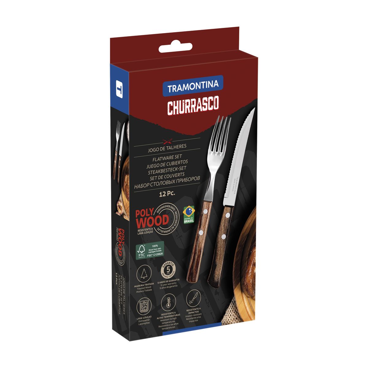 Tramontina's 12-Piece flatware set with stainless-steel blades and treated brown polywood handles is indispensable for your table