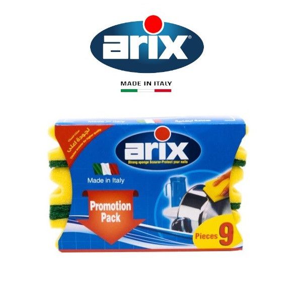 Arix Grip Sponge 9 pcs Set - Heavy-Duty Scouring Sponges with Easy-Grip Design for Tough Cleaning Tasks