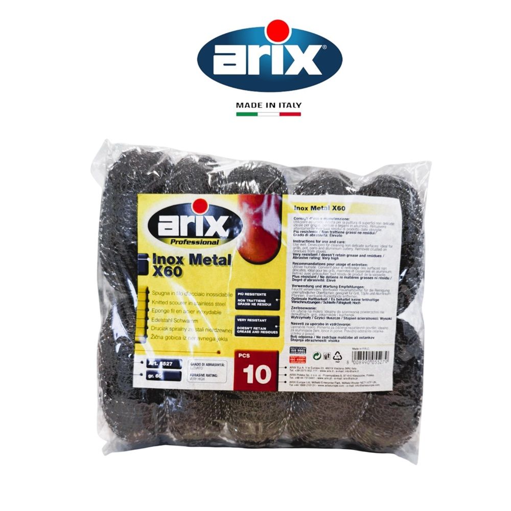 Arix Professional Inox 10-pcs Metal X60 Stainless Steel Knitted Scourer – Heavy-Duty Cleaning