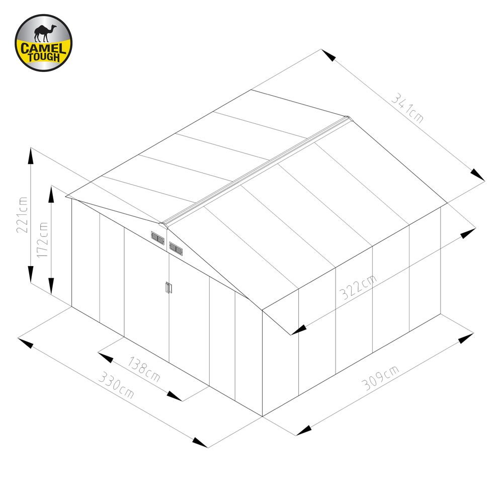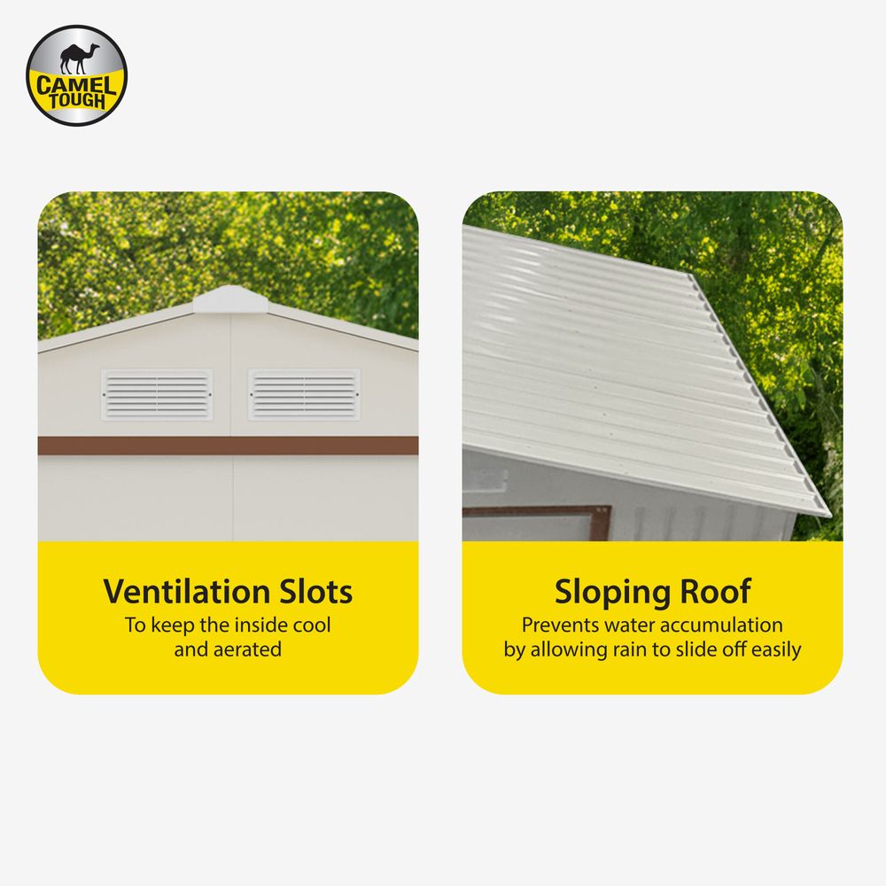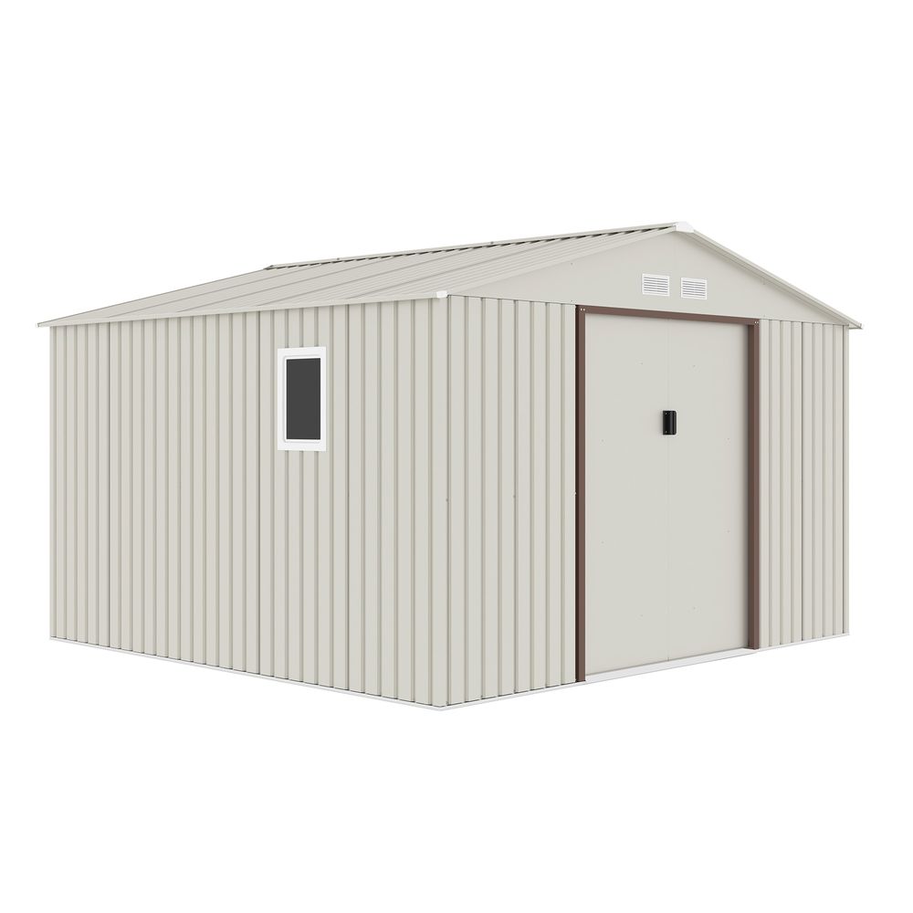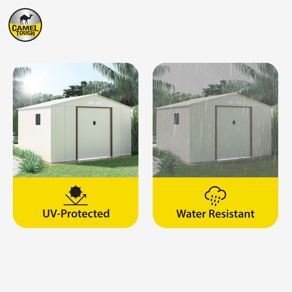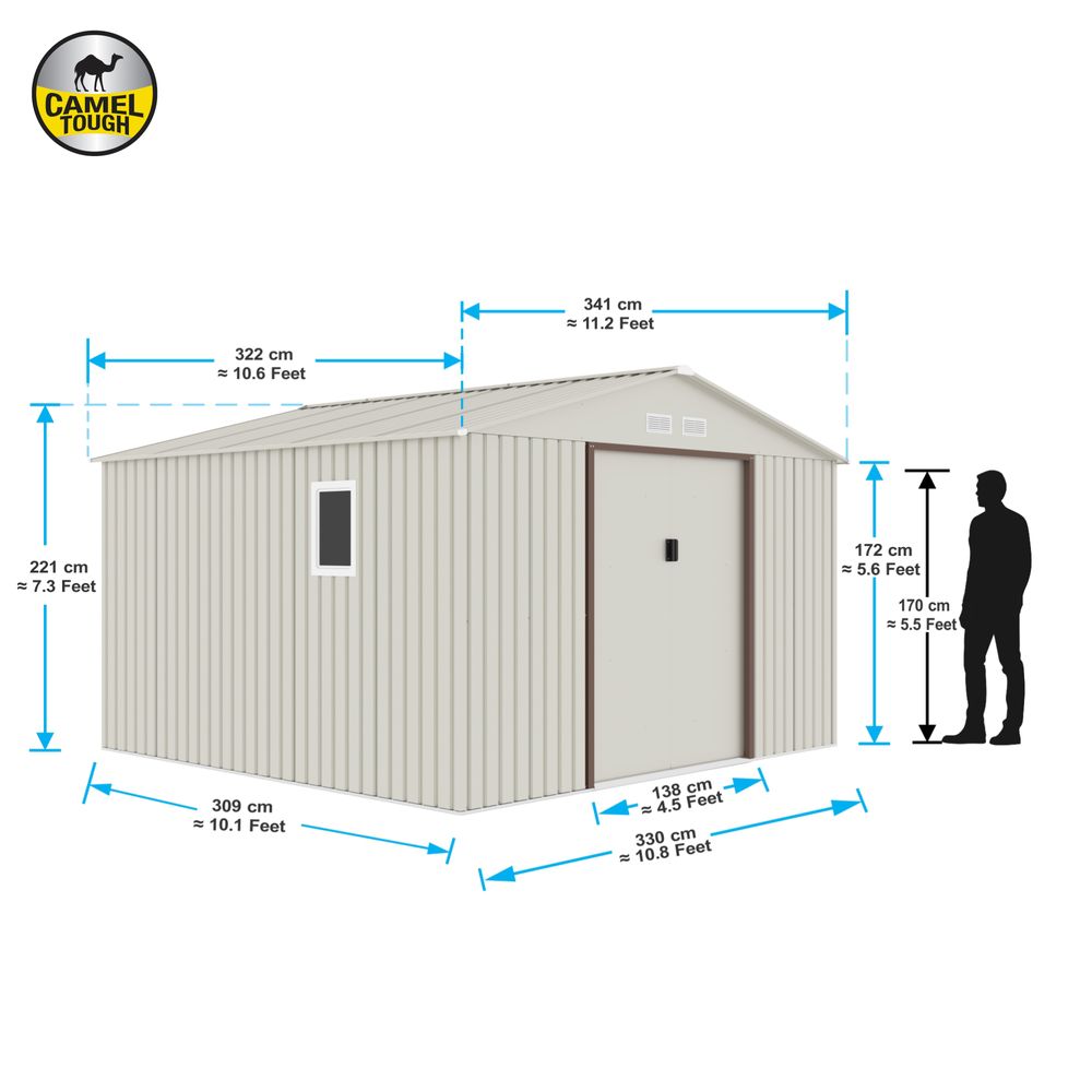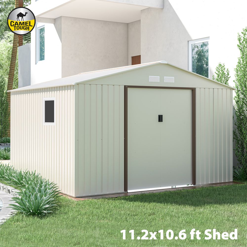 CamelTough Outdoor Metal Storage Shed, 11.2x10.6 feet, Garden Metal Shed Beige, CT-644