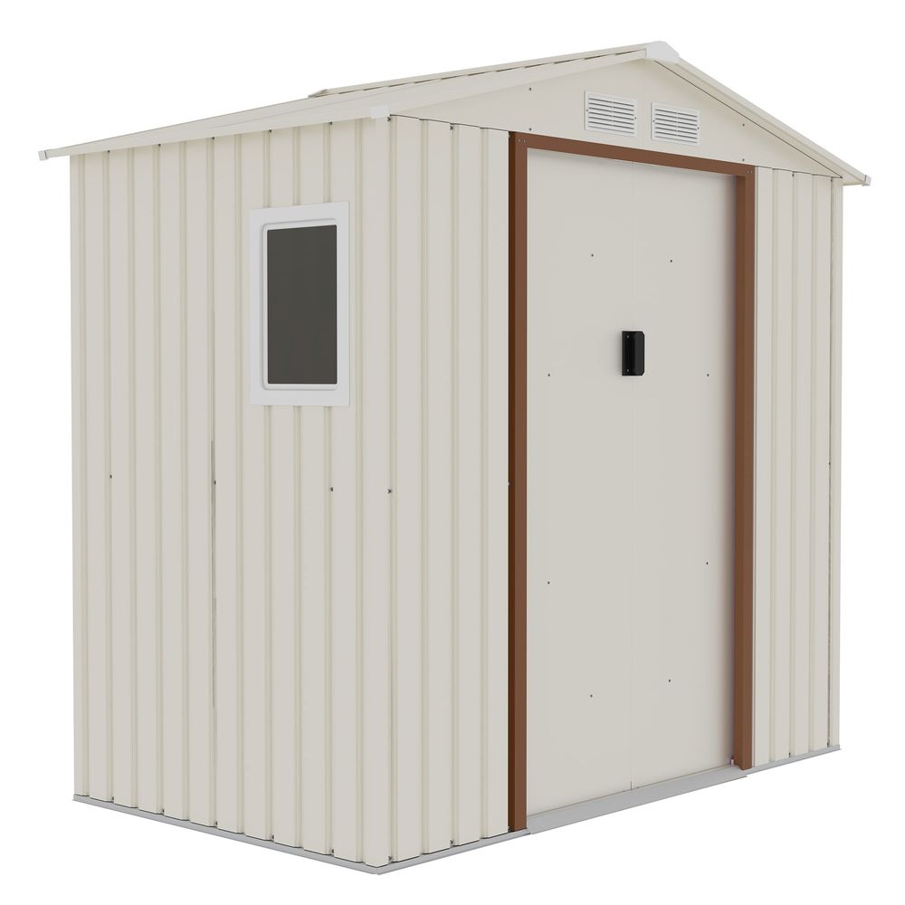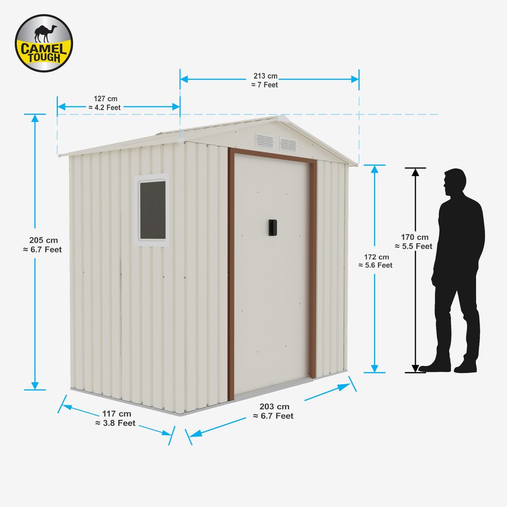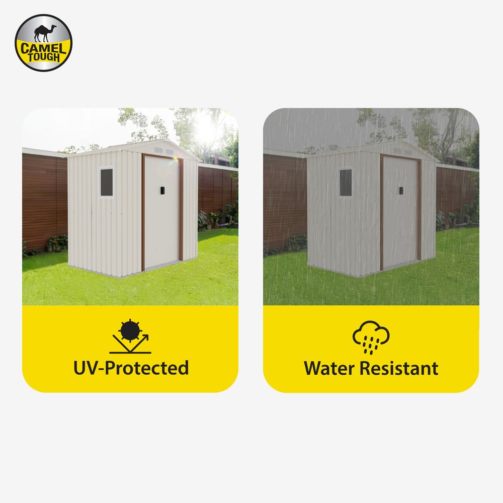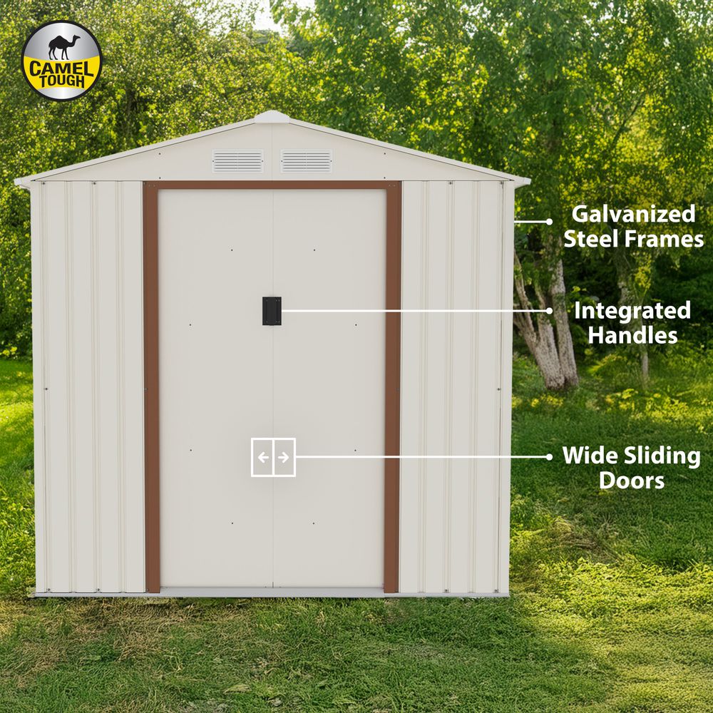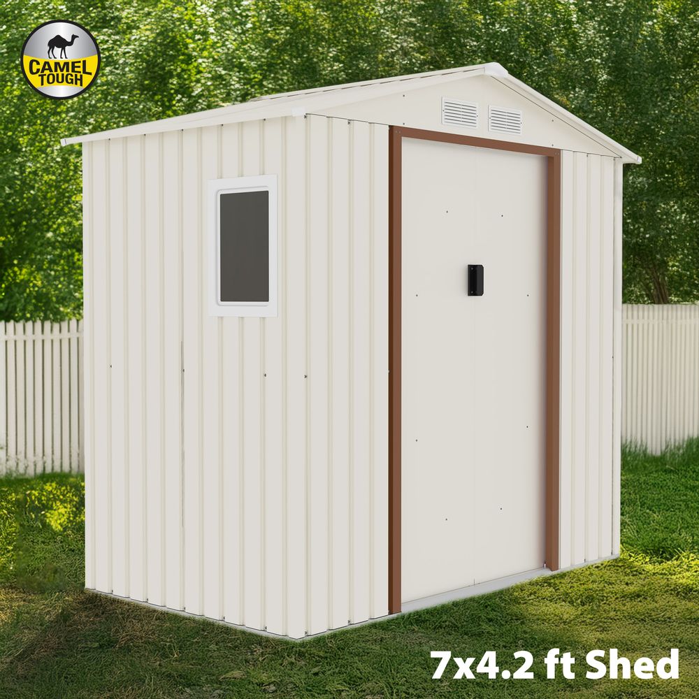 CamelTough Outdoor Metal Storage Shed, 7X4.2 feet, Garden Metal Shed Weather Resistant Beige, CT-640