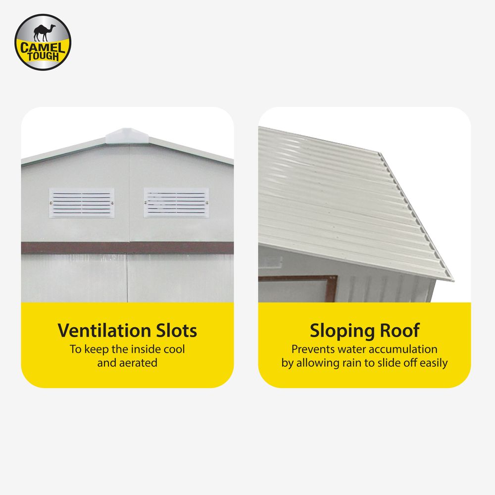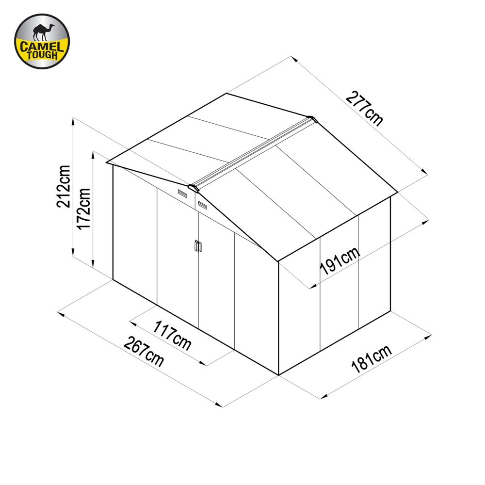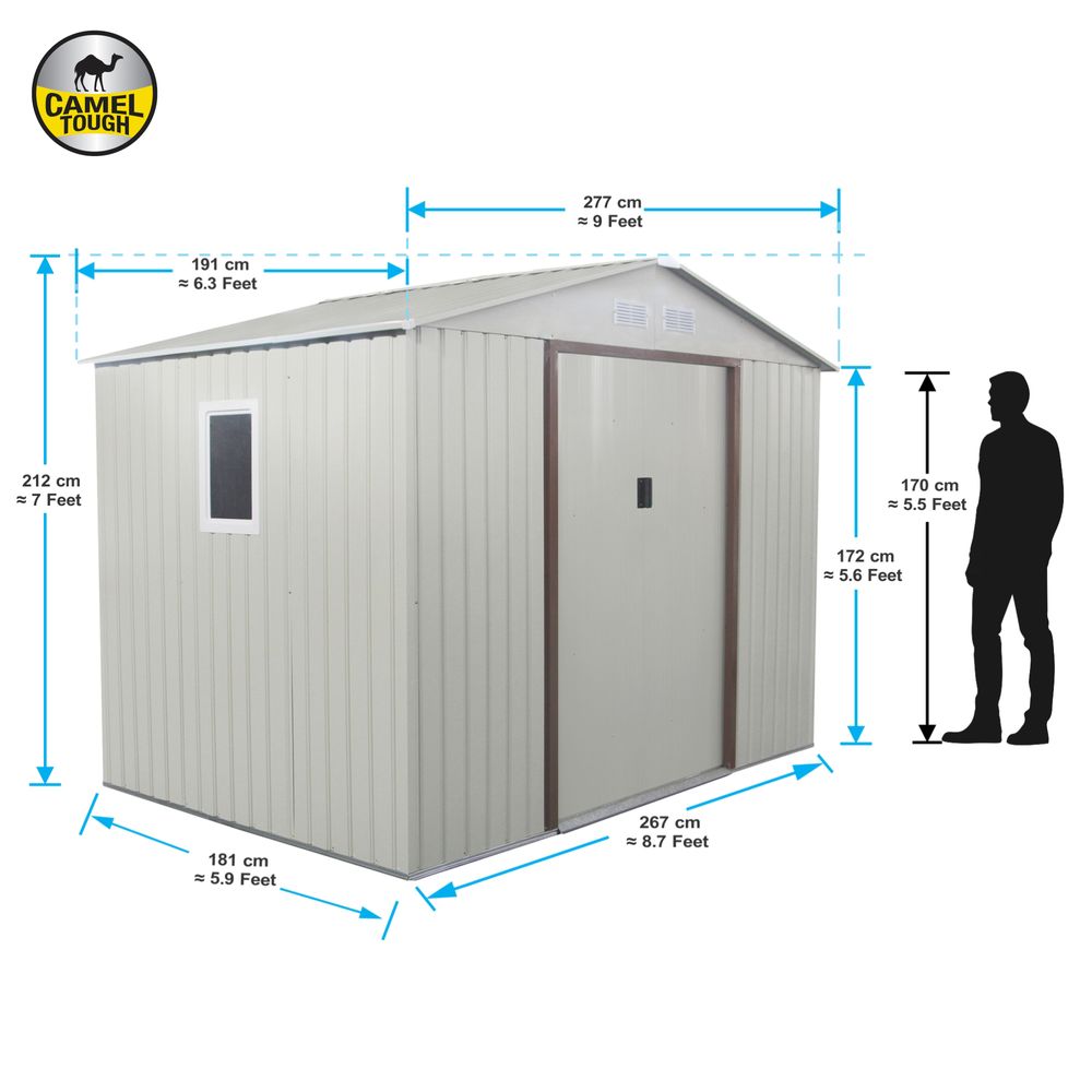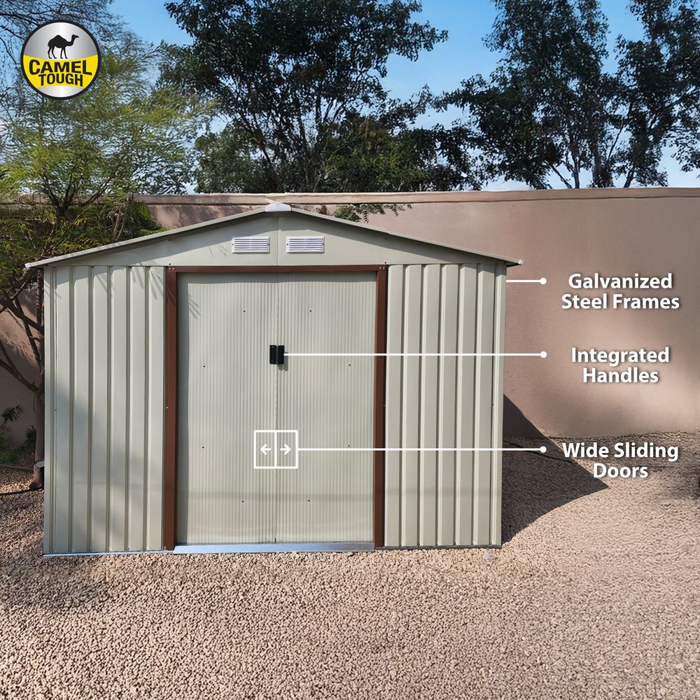 CamelTough Outdoor Metal Storage Shed, 9.1X6.3 feet, Garden Metal Shed Beige, CT-641