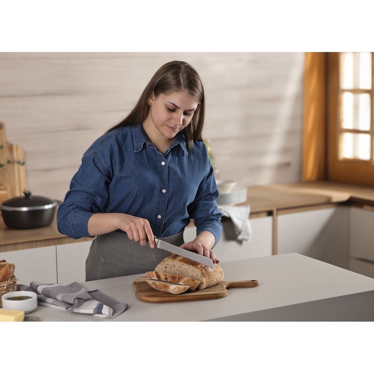 The Tramontina Century Wood 8-inch bread knife with stainless-steel blade and brown treated-wood handle is perfect for elevating your cooking experience