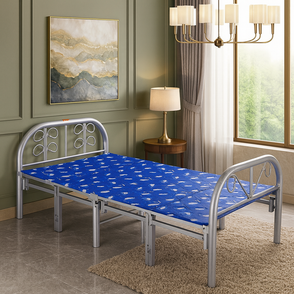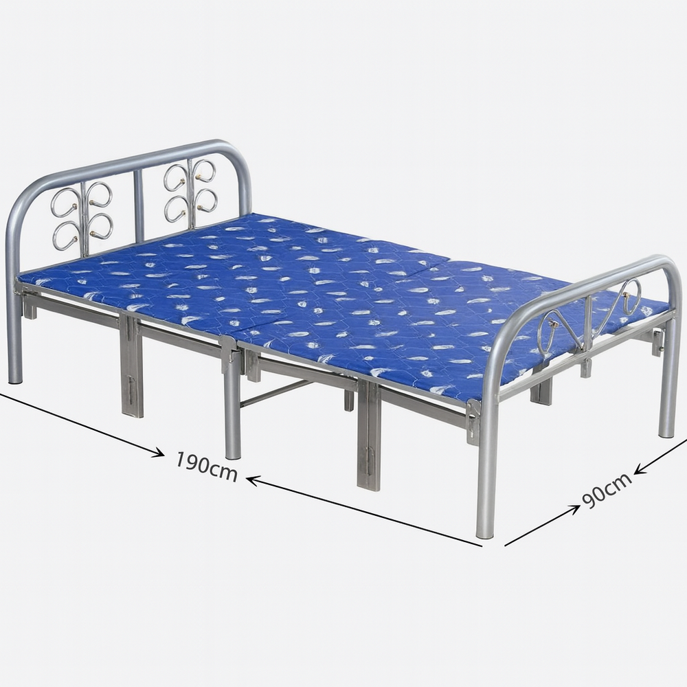Folding Bed Steel Frame Silver Dimension 90x190 Centimeters. Model KFB90