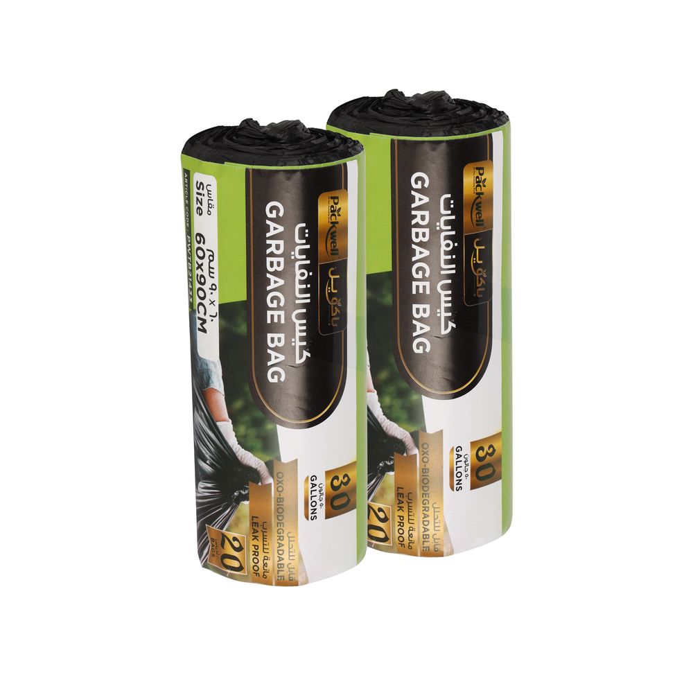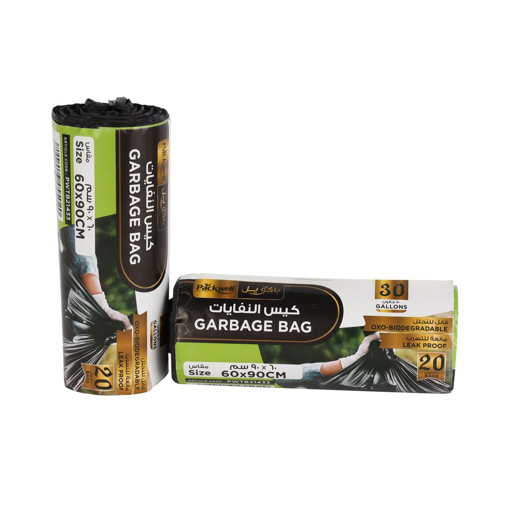 Garbage bag Strong black color & Bio-Degradable Heavy Duty Disposable Garbage 20 Pcs 60x90 cm pack of 2 pcs roll Packwell Trash Bag