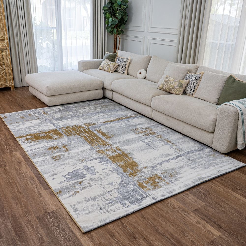 Greg Rug-Abstract Style-Grey-Gold-50 x 80 cm (1.6 x 2.6ft)