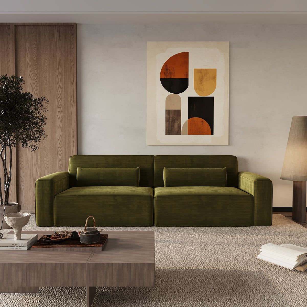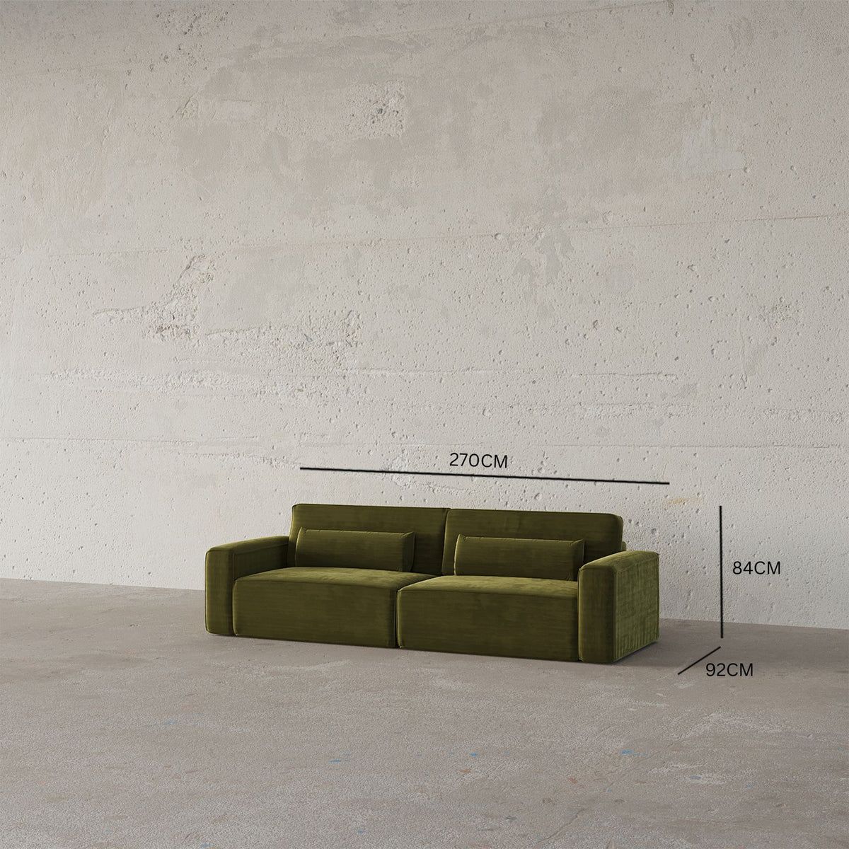 Jacklin 3 Seater Sofa – Luxury Olive Green Velvet Modern Sofa for Elegant Living Spaces