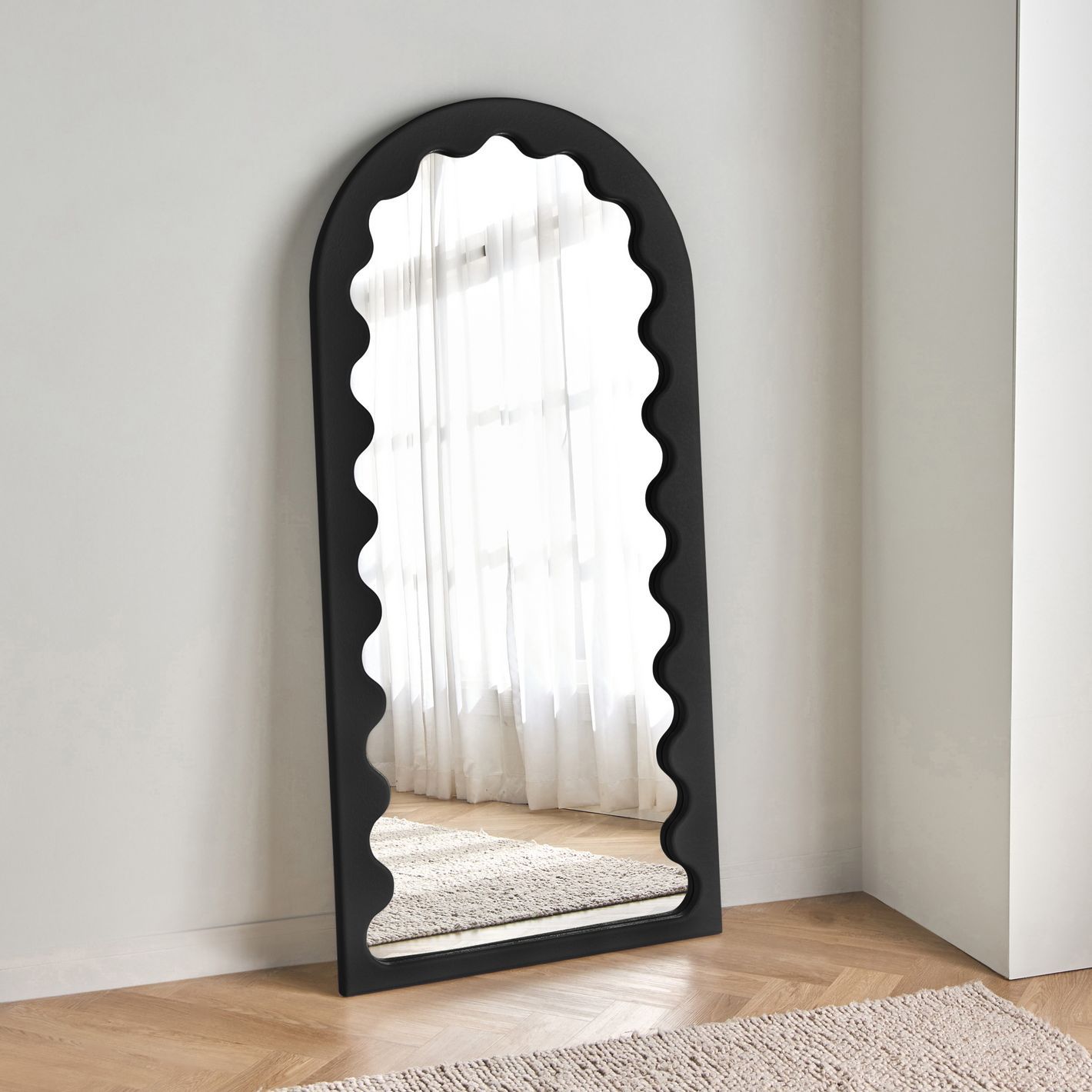 Designed with a unique wave-patterned arch frame and finished with textured detailing, this mirror brings a modern yet timeless charm to any space