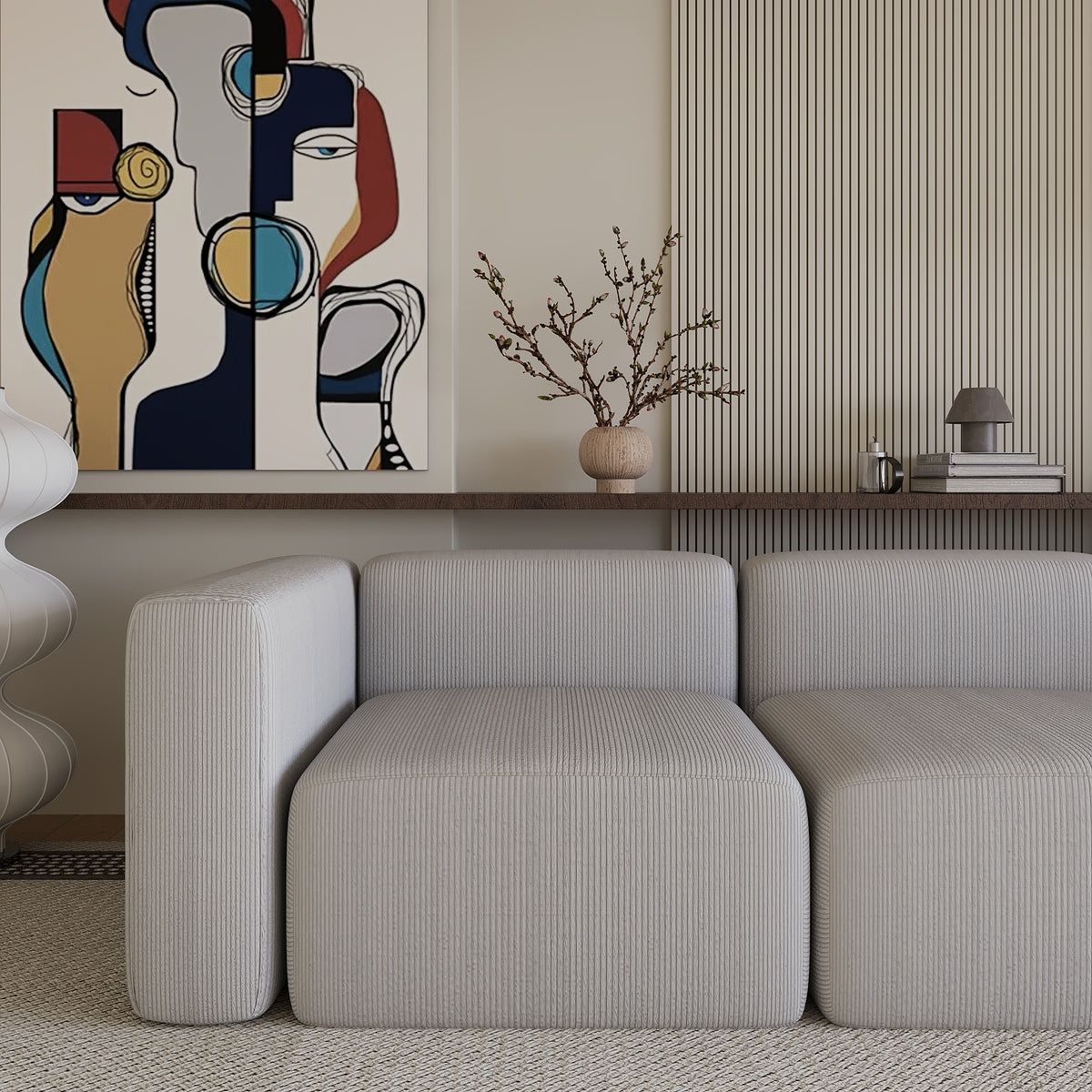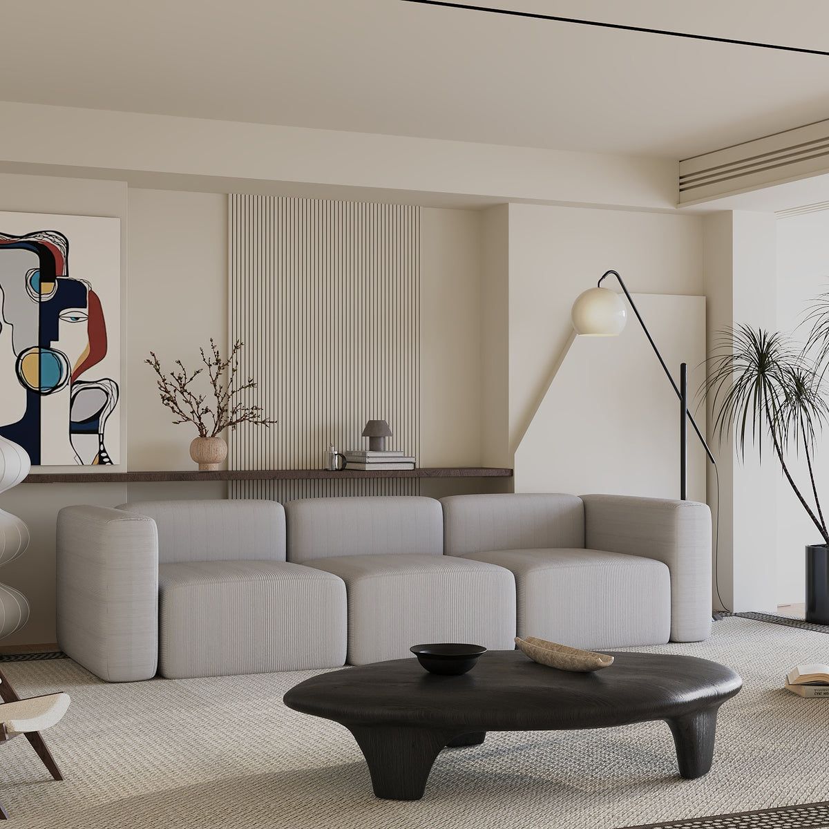 Upholstered in a premium off-white cotton blend, this sofa offers a soft, breathable, and durable seating experience