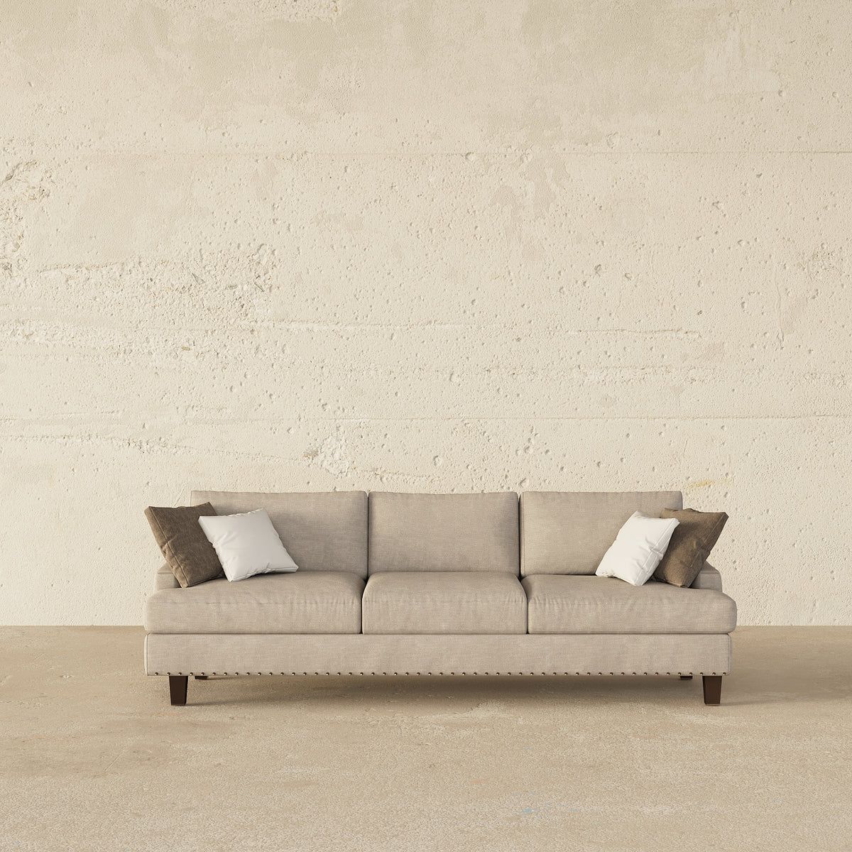 Upholstered in a soft beige premium cotton blend, this sofa offers a warm and inviting foundation that blends seamlessly with any décor style