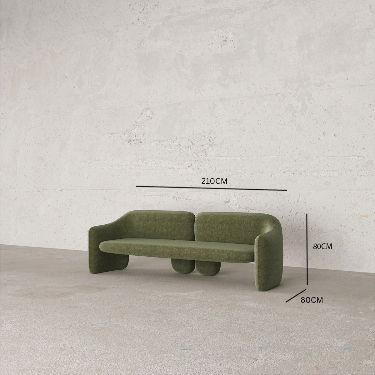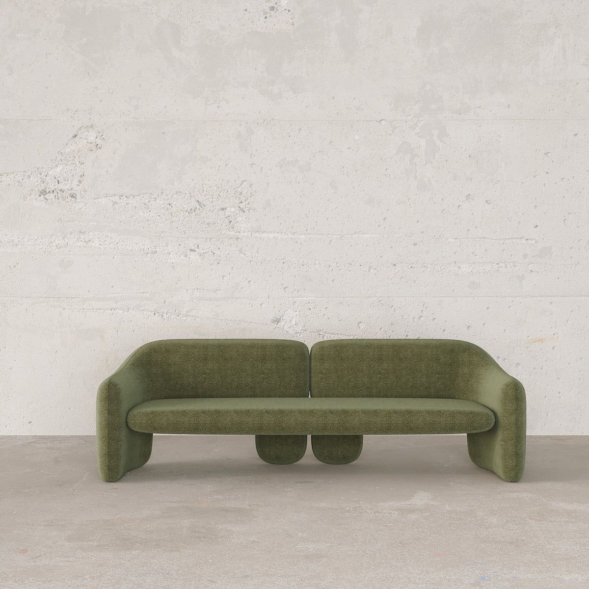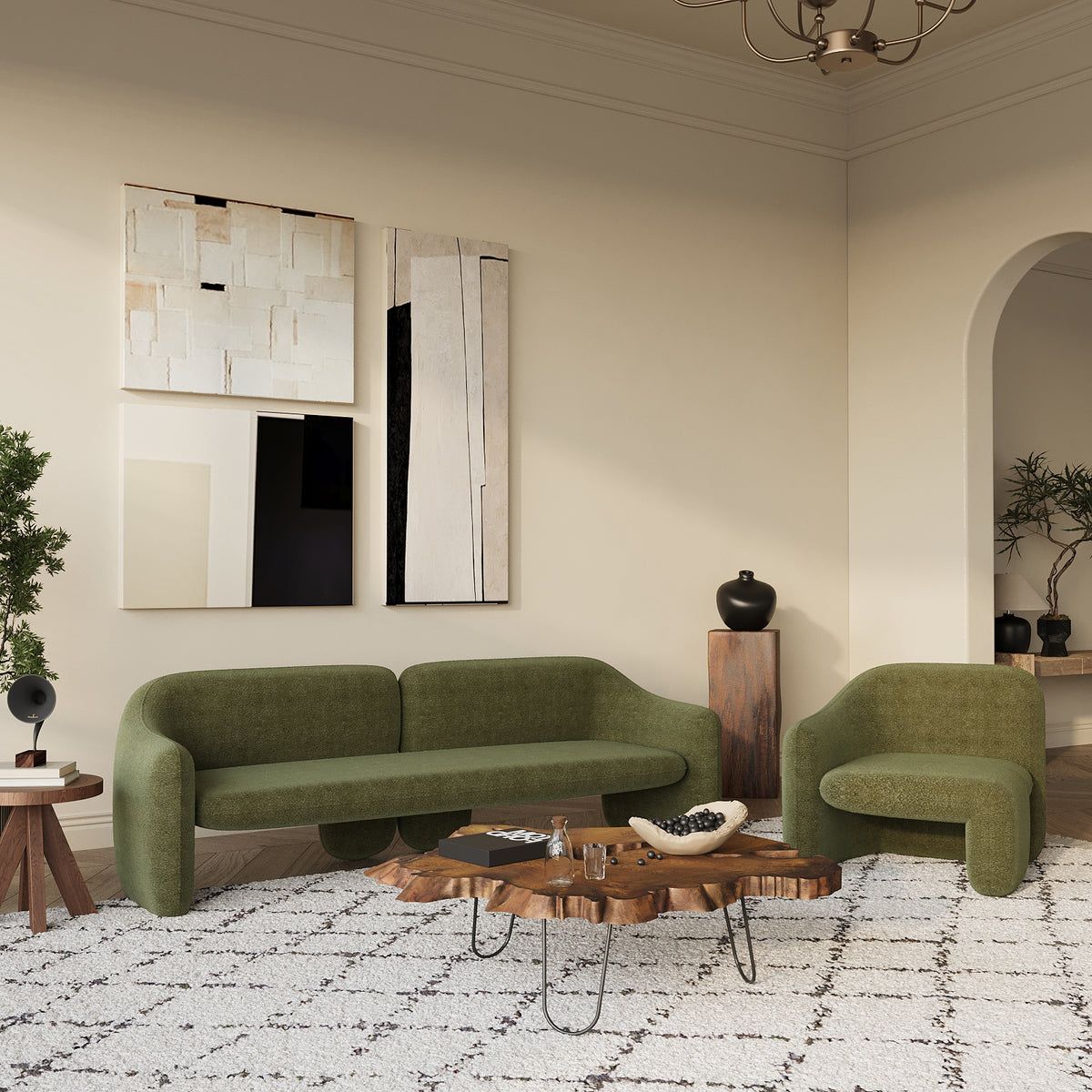 Upholstered in premium olive green boucle, this sofa offers a soft, textured feel that adds depth and sophistication to any living space