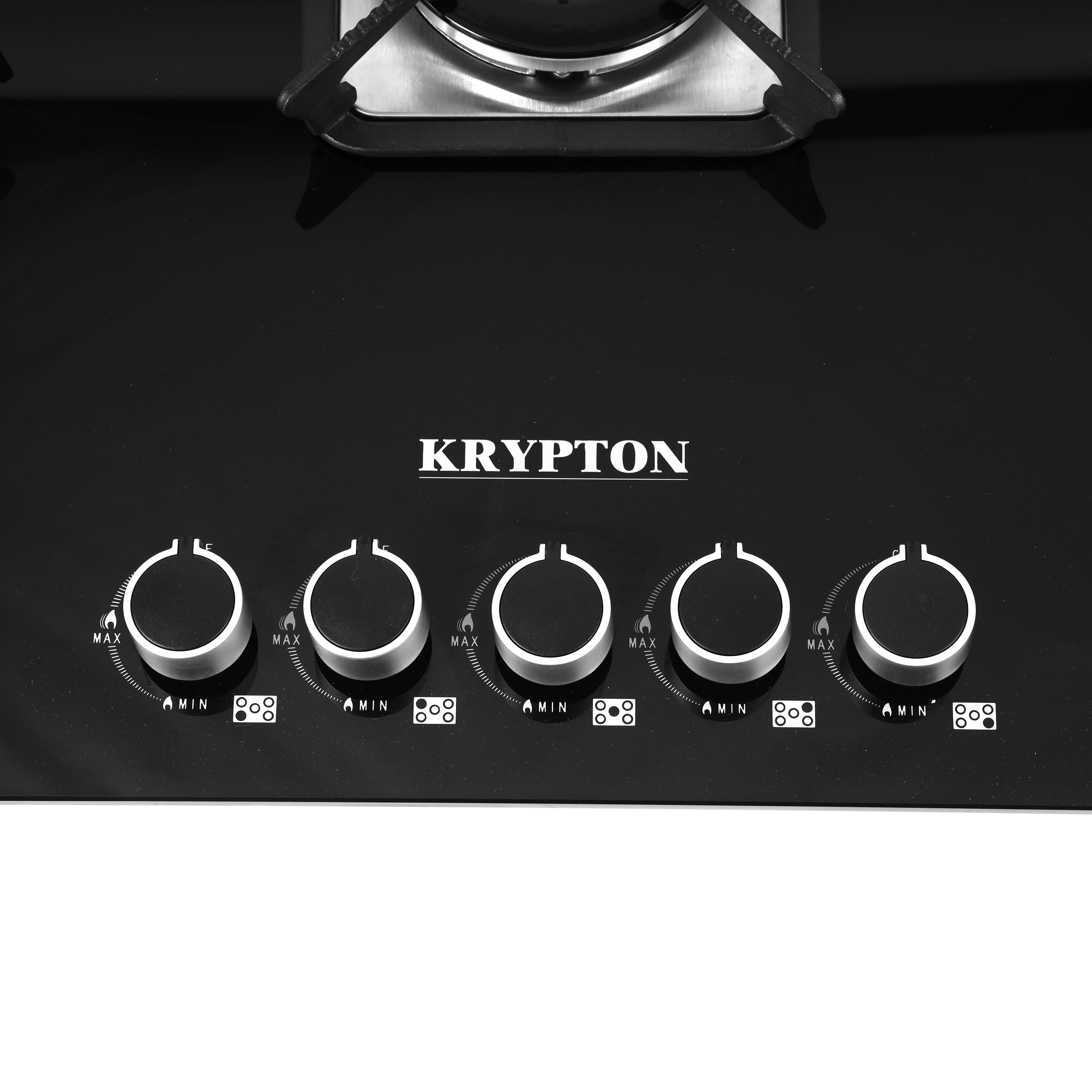 Krypton 2-IN-1 Built-In Gas Hob- KNGC6434/ 5 Burners, Tempered Glass Top, Stove with Sabaf Burner, Low Consumption and Improved Flow for Efficient Heating/ Pulse Ignition System, Perfect for Residential Use, Apartment / Black, 2 Years Warranty