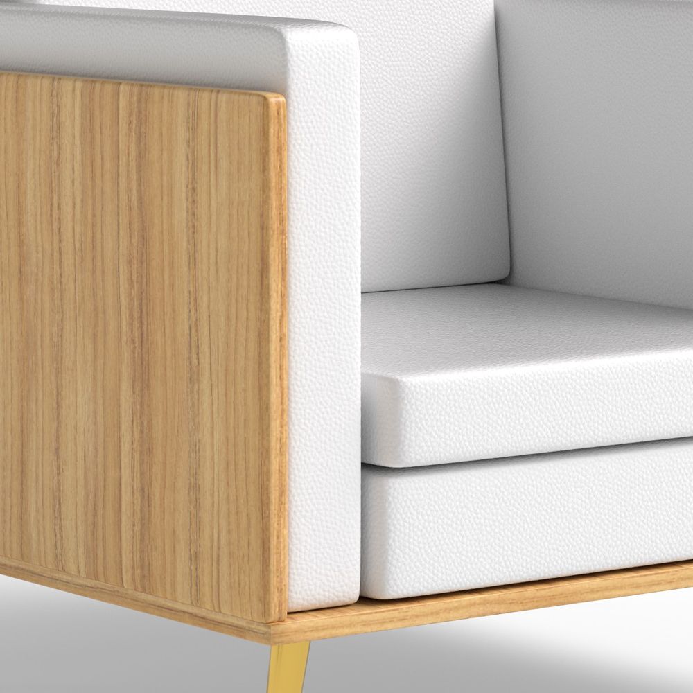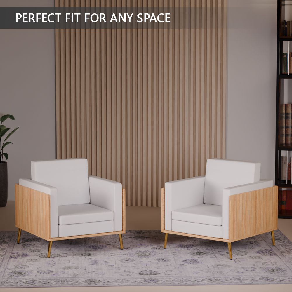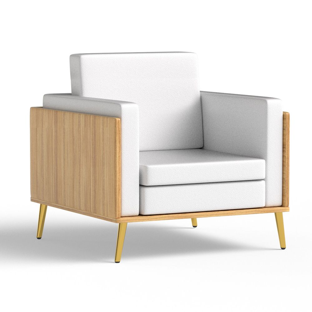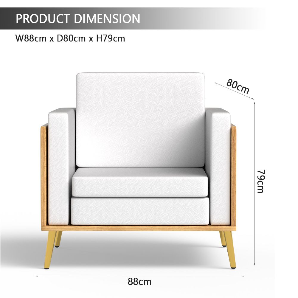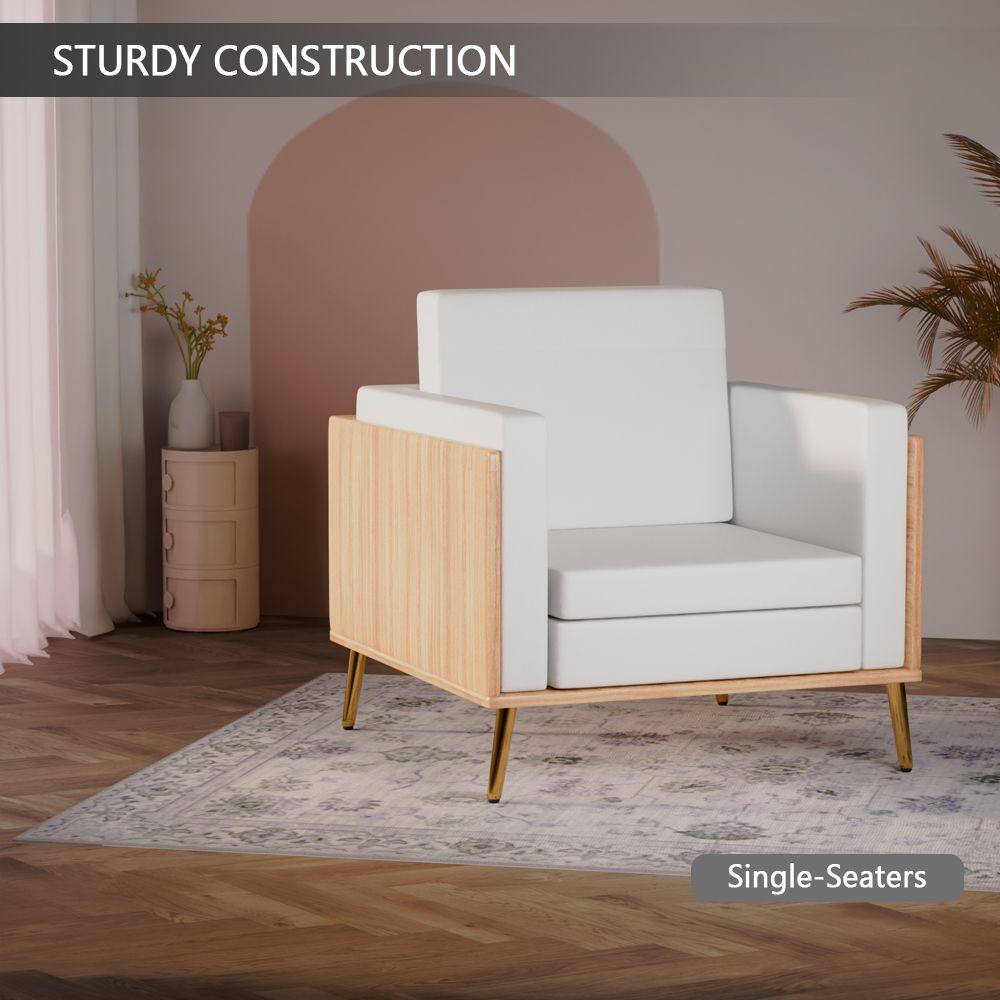 Mahmayi KD 3326 Stylish Single Seat Coco Bolo Wooden Sofa with Golden Legs and Comfortable PU Cushion, Durable and Space Saving Design, Ideal for Home, Office, Living Room and Lounge Area - White