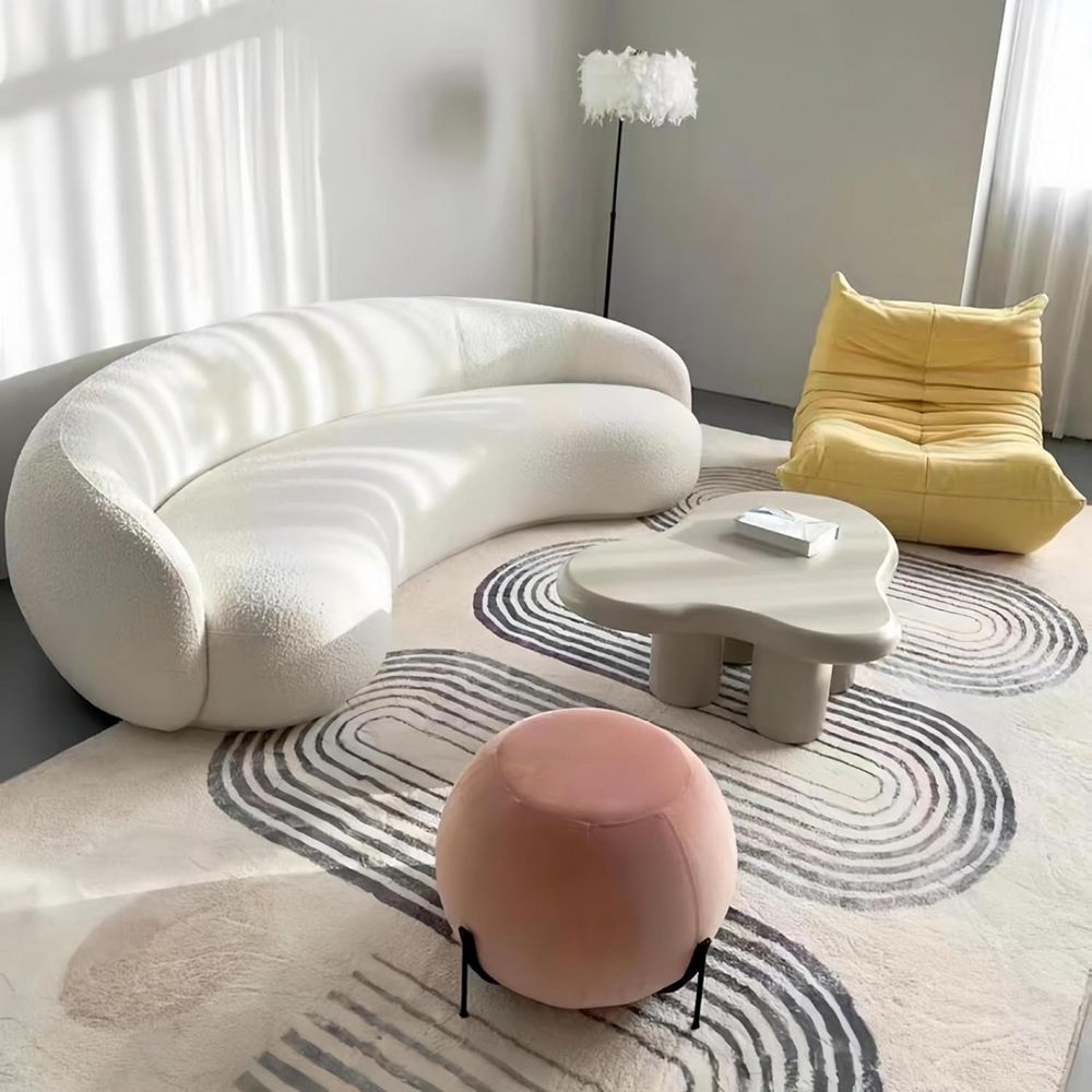 Modern Minimalist Grandeur: The white fleece finish and sweeping curves create a bold, modern statement that complements Scandinavian, contemporary, or luxury interiors.