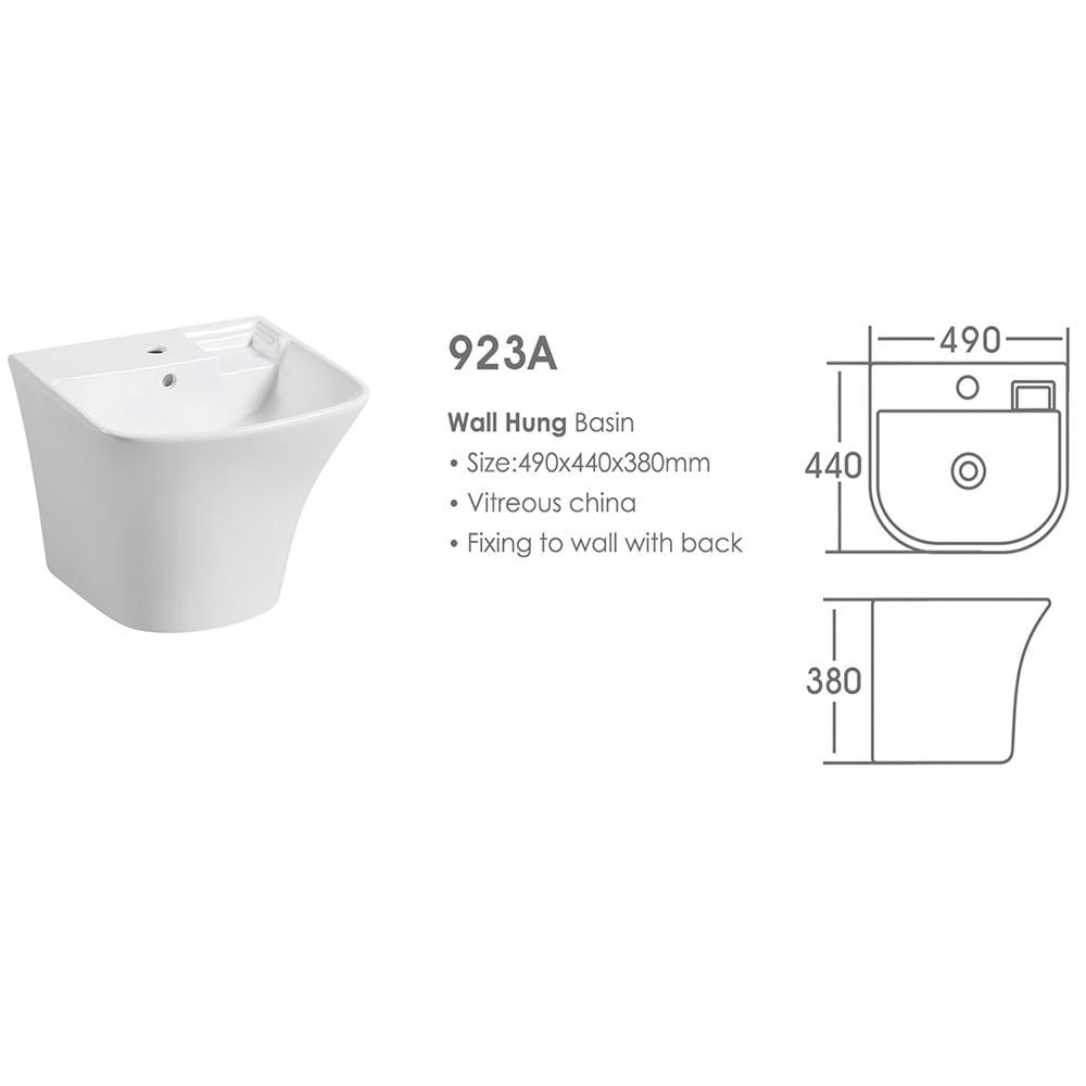 Milano Luxe Plazzo Wall Hung Basin 490X440X380 Mm