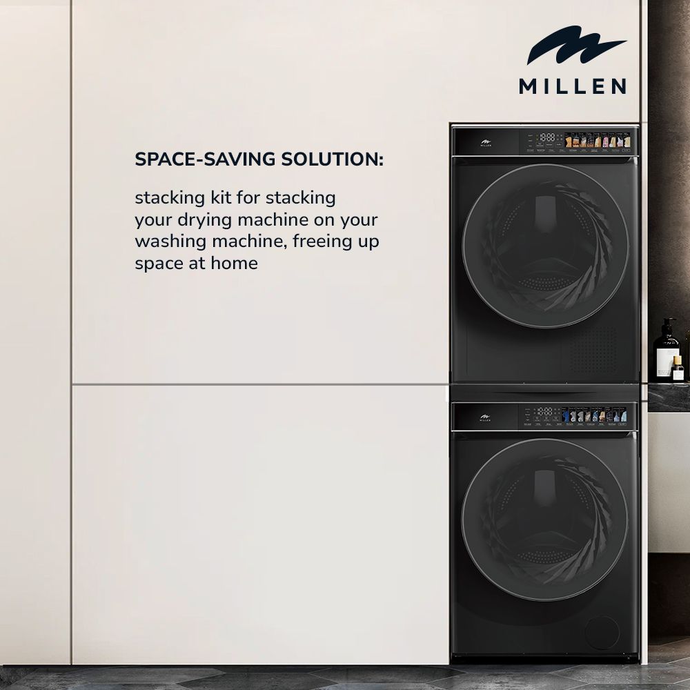 Stacking kit for mounting a dryer on top of a washing machine. Works for all MILLEN models