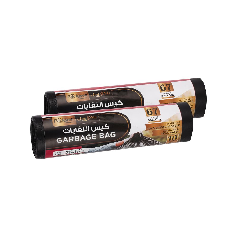 صور المنتج Packwell Garbage Bag Black Strong & Bio-Degradable Heavy Duty Disposable Garbage 10 Pcs 105x125 cm pack of 2 pcs roll تستخدم لأغراض التوضيح فقط. وقد يختلف لون المنتج قليلاً بسبب إضاءة التصوير أو إعدادات الشاشة.