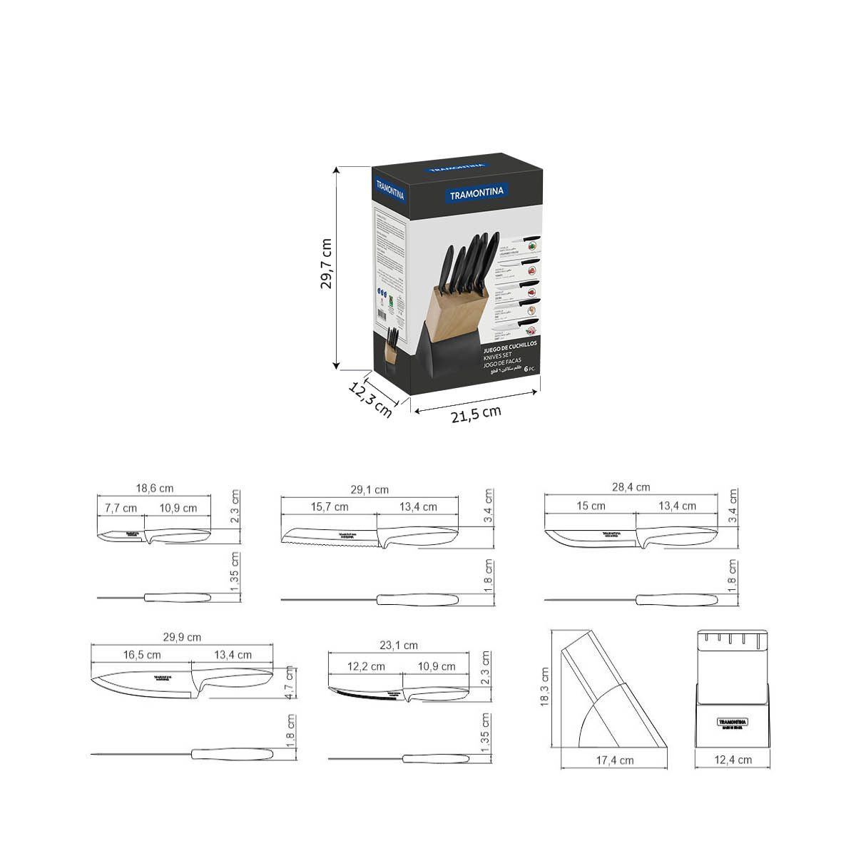 Complete your kitchen with the Tramontina Plenus 6-piece knife set with stainless-steel blades and black polypropylene handles and ensure more practicality for your meals