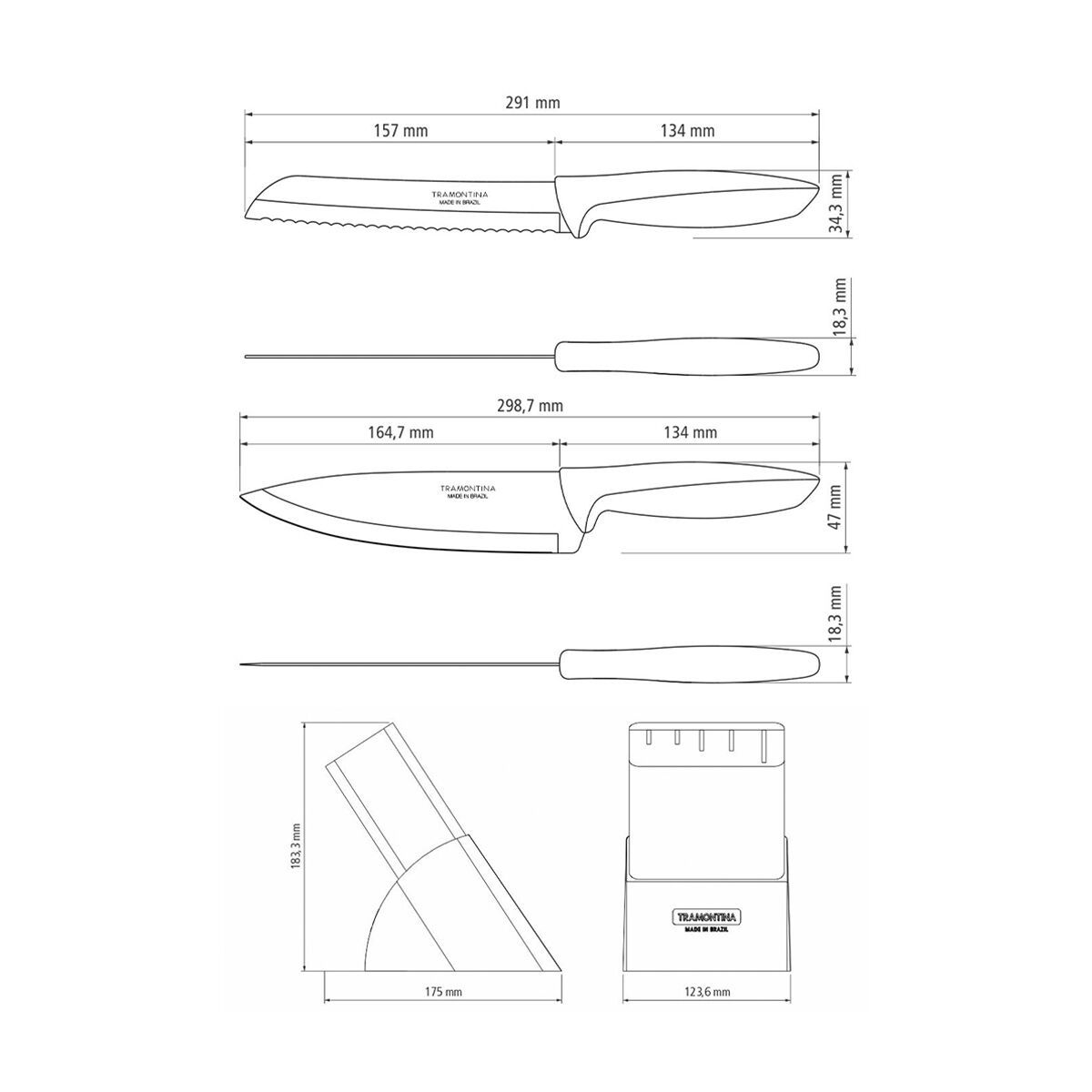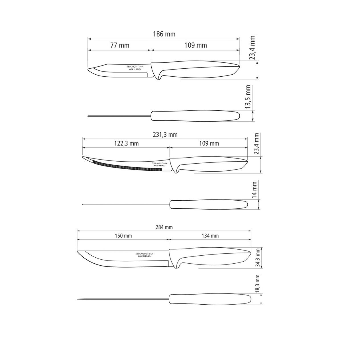 Developed to accompany you when preparing the most varied recipes, the knives in the set have stainless-steel blades with longer-lasting cutting edge and polypropylene handles that ensure greater strength and durability