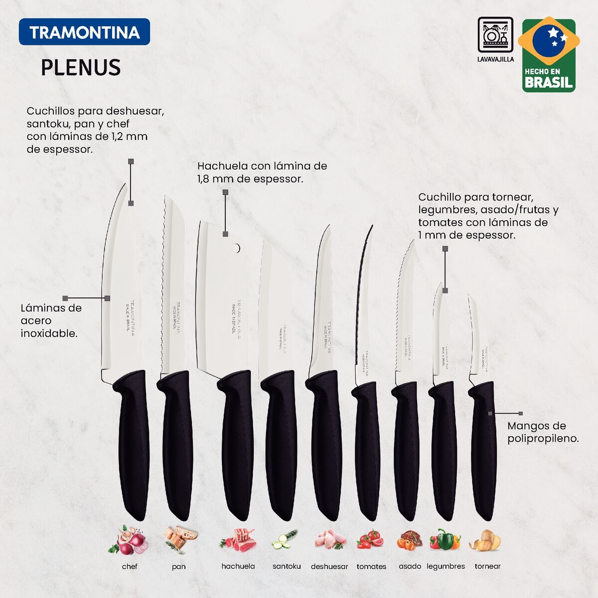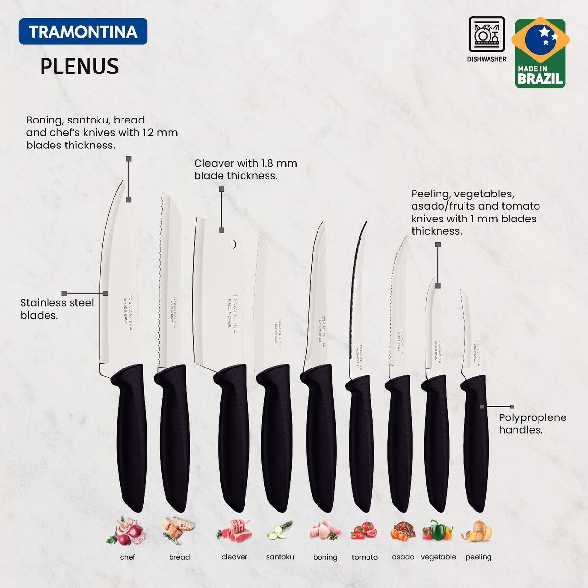With the Tramontina Plenus 9-piece knife set with stainless steel blades and black polypropylene handles, you will have the complete cutting solution for a variety of culinary occasions