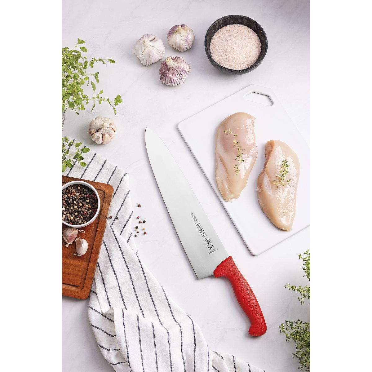 Use the Tramontina Professional 12-inch meat knife with stainless-steel blade and red polypropylene handle and make your recipe preparation more efficient and practical