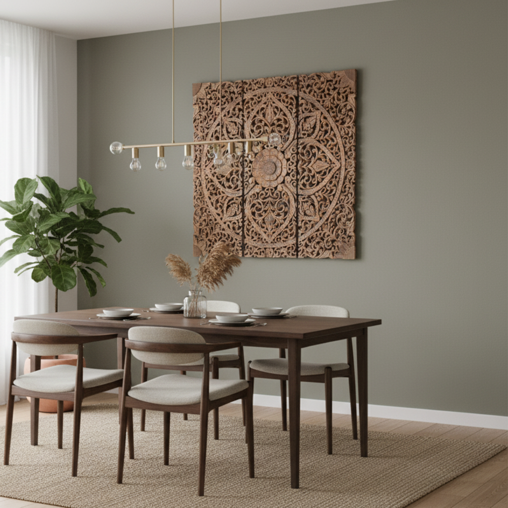 Wall Decor Hand Carved Mandala Wall Art Panel For Office Living Room Bedroom Decoration , Home Decor Rustic Frame Wall Art In 3 Pieces Carved Mdf Boho Wall Decor Panel 120 X120 Cm
