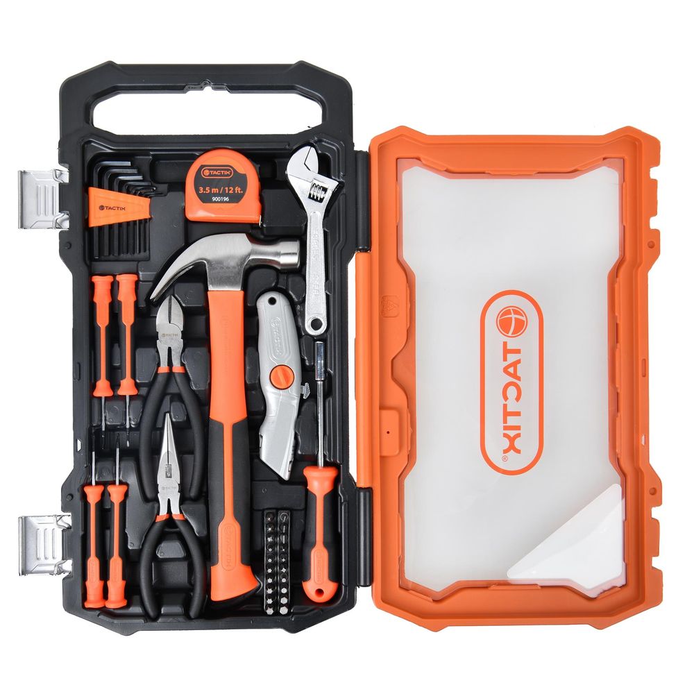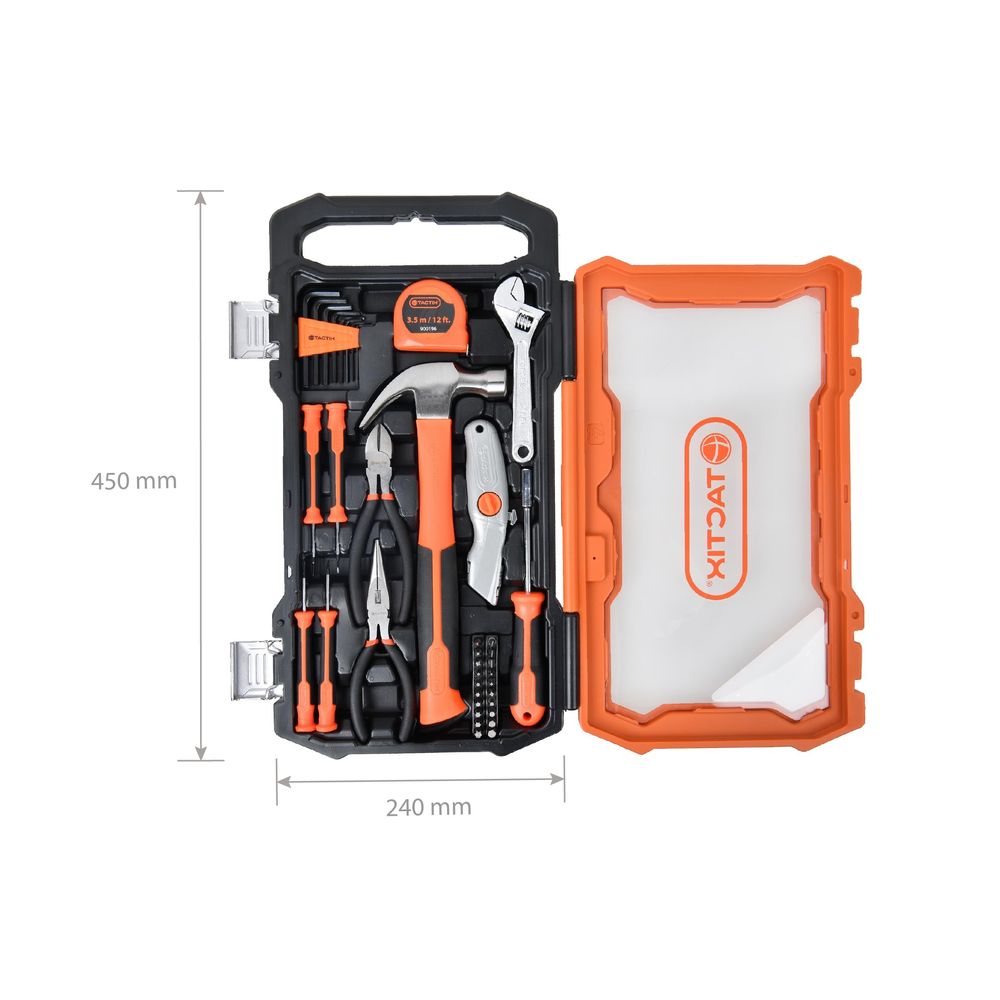 Tactix 39-Piece Household Tool Set, Claw Hammer, Tape Measure, Pliers, Adjustable Wrench, Screwdrivers, Hex Keys, Utility Knife & More, Tool Kit for Home Repair & Maintenance- 900196