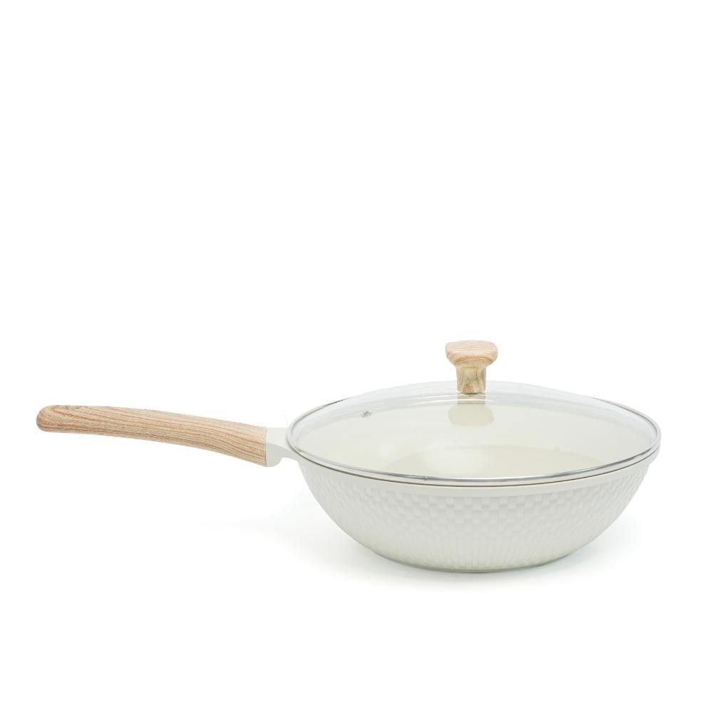 Ceramic Non-Stick Lattice Series 28 CM Wok With Lid – Induction Compatible, Premium Cream Finish