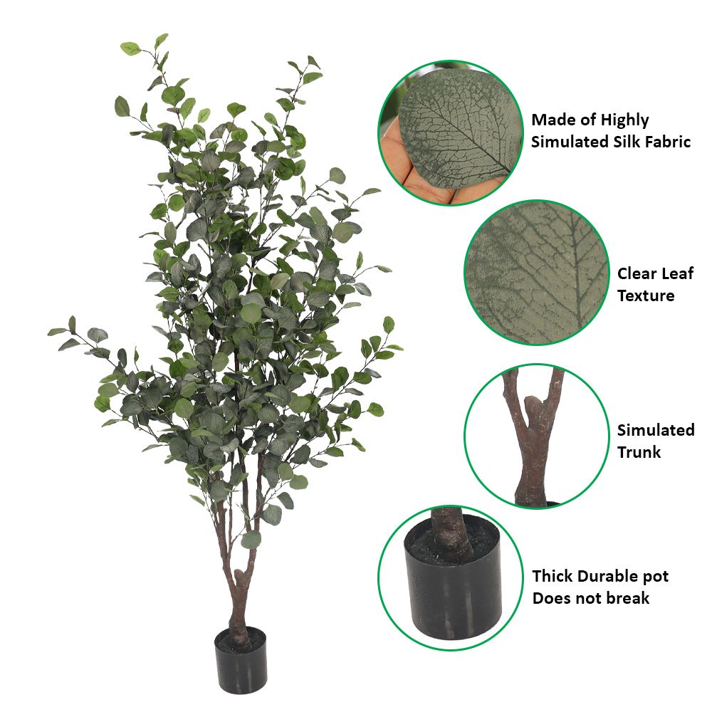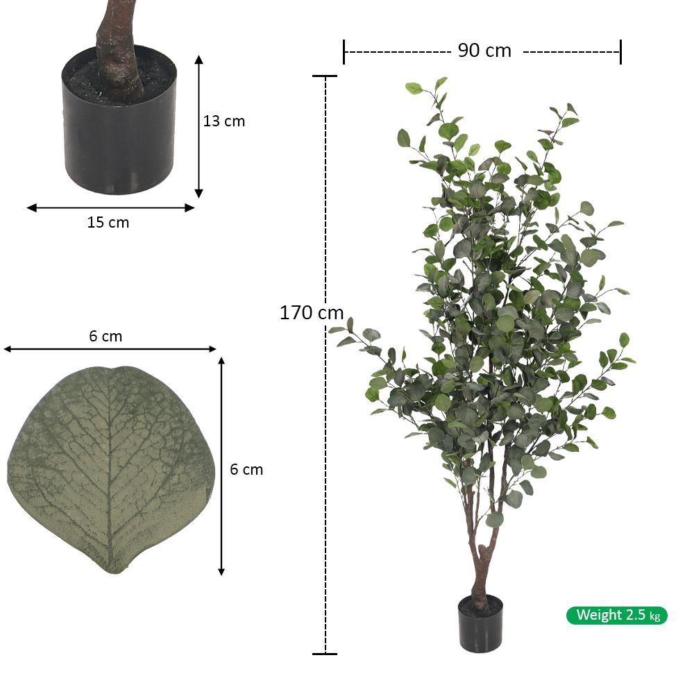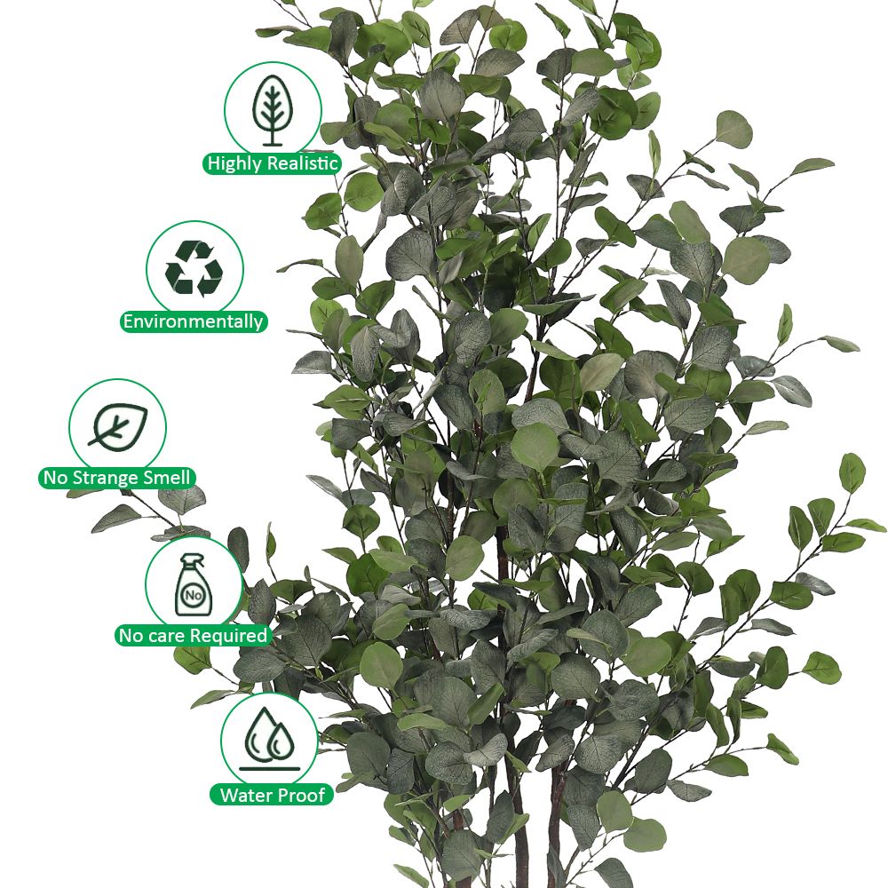 YATAI DECOR Artificial Eucalyptus Plant, 170cm Tall Realistic PVC Plastic Green Leaves Faux Plants with Pot & Flexible Stem, Everlasting, Maintenance-Free & Waterproof Fake Plants for Home Office Decor