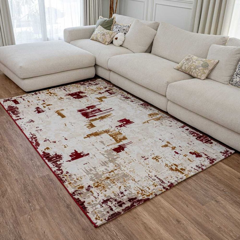 Athena Rug-Abstract Style-Beige-Red-150 x 230 cm (4.9 x 7.5 ft)