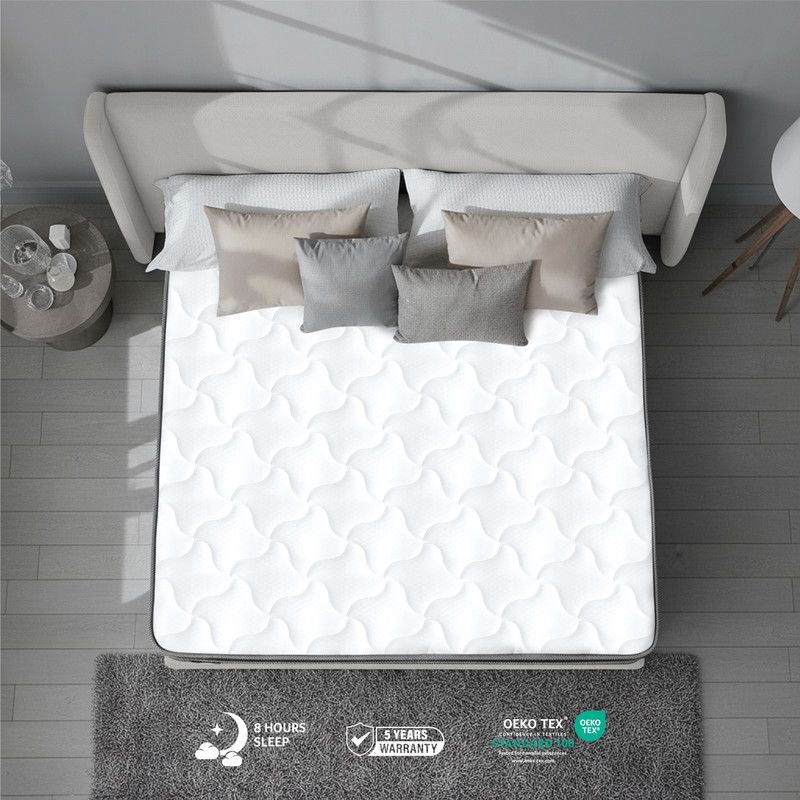At its core lies a durable Bonnel spring system, engineered to distribute body weight evenly and prevent sagging over time. The T.Top quilting design, made with 13kg soft foam, Decron padding, and non-woven layers, delivers a plush surface feel that keeps you cozy without sinking.