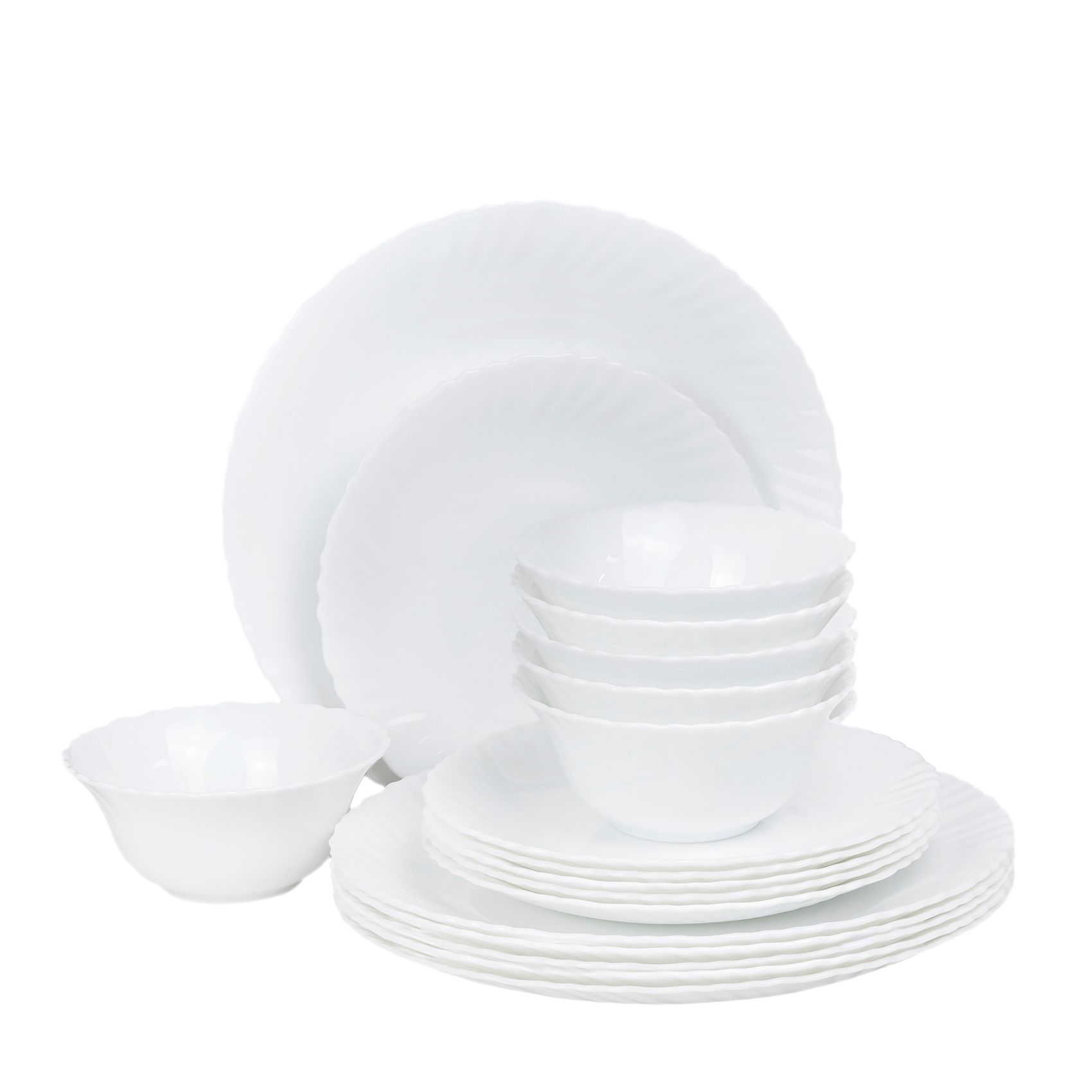Made from premium-quality opal glass, this dinner set combines durability, lightweight convenience, and timeless elegance, making it ideal for both everyday use and special occasions