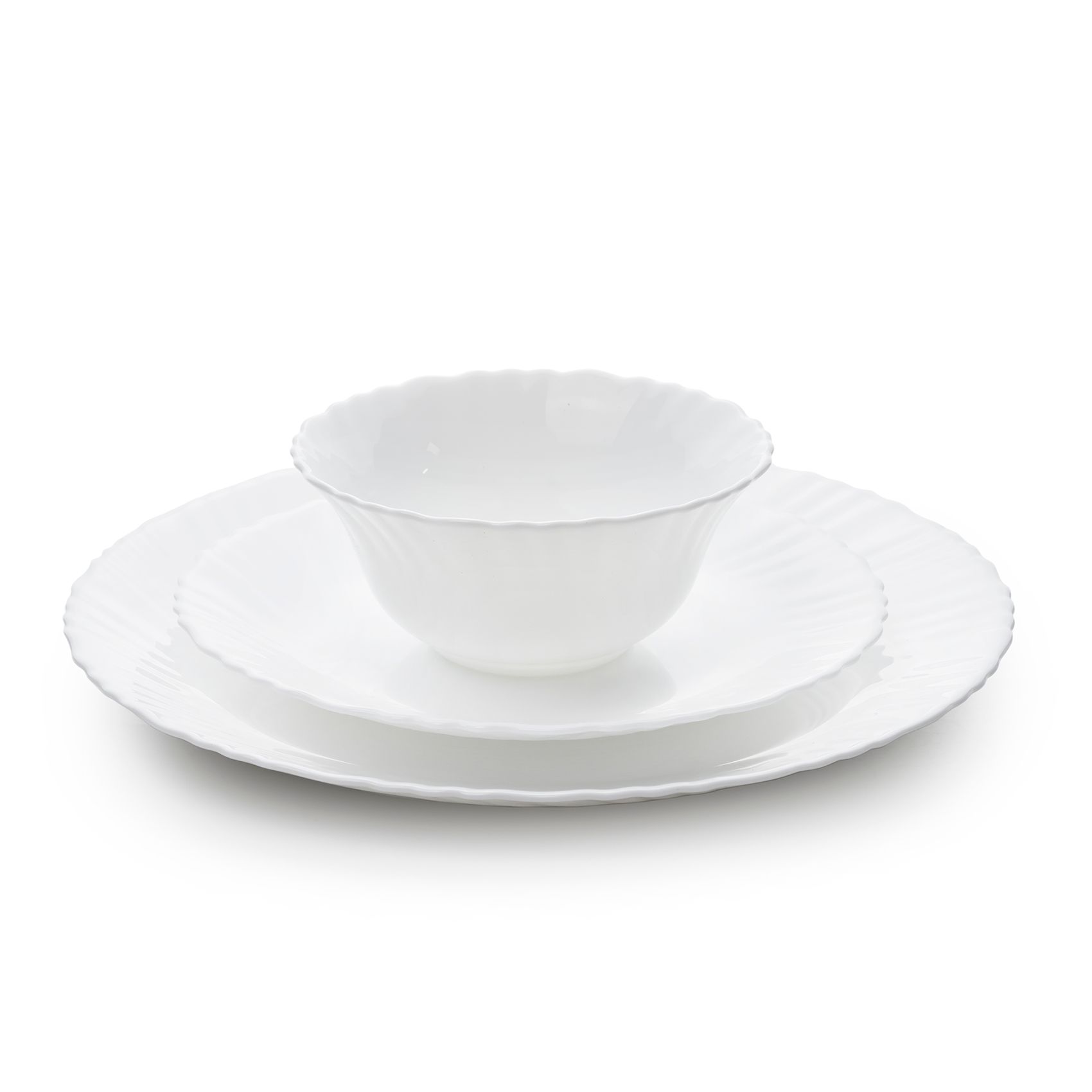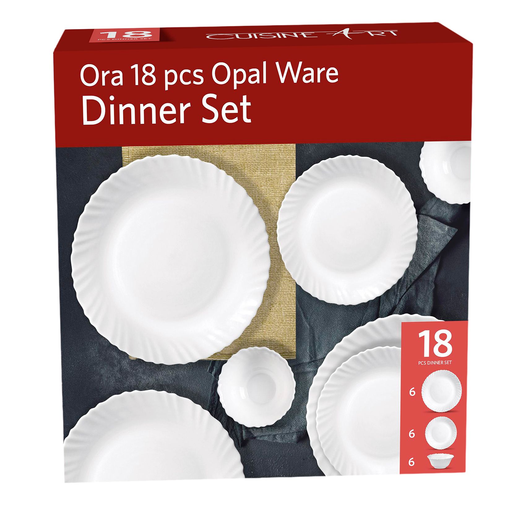 Cuisine Art ORA 18-Piece Opalware Dinner Set, White | Durable Lightweight Opal Glass Crockery | Classique Design | 6 Full Plates, 6 Quarter Plates, 6 Soup Bowls | Microwave & Dishwasher Safe