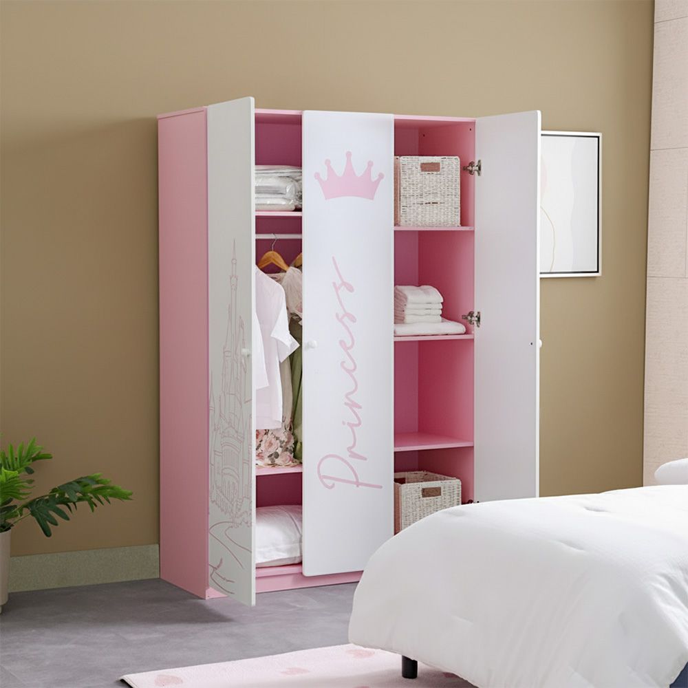 Disney Princess 3Door Kids Wardrobe-White & Pink