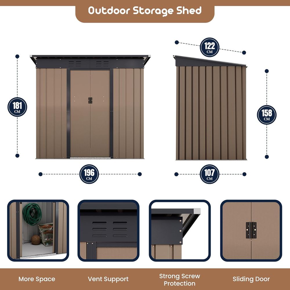 Egardenkart, Outdoor Storage Shed Metal - Tan, 6.5x6 Ft | Garden Shed with Lockable Door | Outdoor Storage Cabinet for Garden Storage | Outdoor Shed Storage (With Installation)
