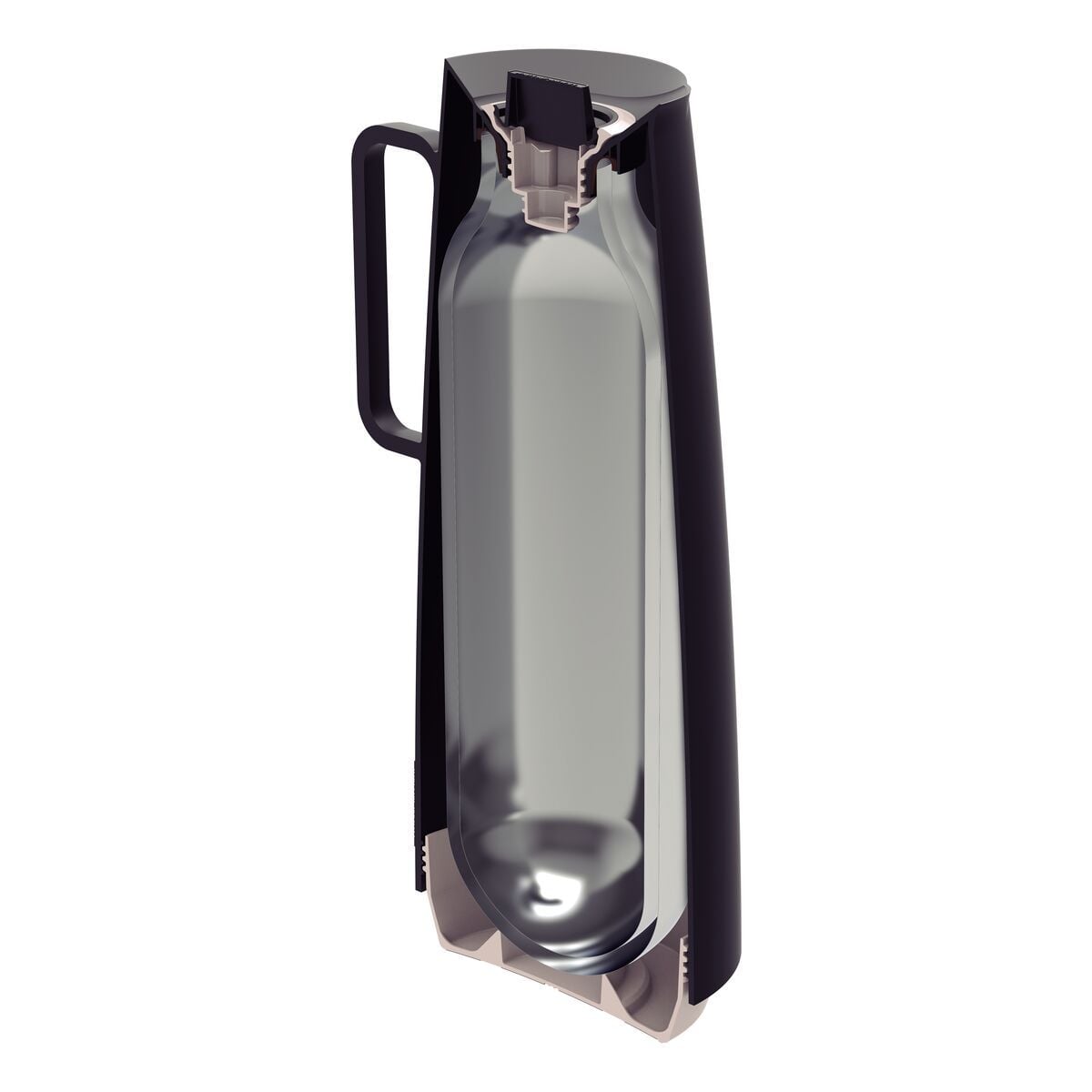 To keep your tea and coffee hot for your daily routine, the Tramontina Exata black plastic thermal flask with 1-liter glass liner is indispensable! Its design is distinctive, featuring minimalist and timeless lines that give your table and your kitchen great style