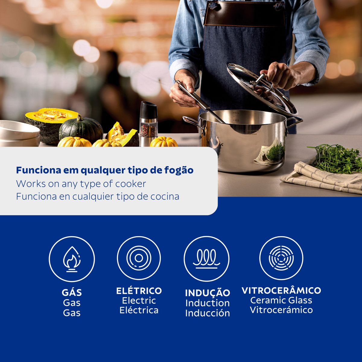 Let the beauty and functionality of stainless steel shine bright in your kitchen with Tramontina's 24 cm 5.8 L stainless steel deep casserole dish with tri-ply body, lid and handles from the Grano line