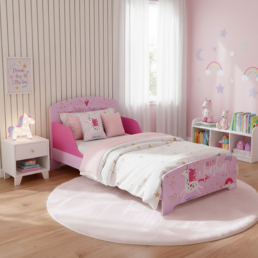 Hello Sunshine 70x140 Toddler Bed With Side Storage Shelf-Pink