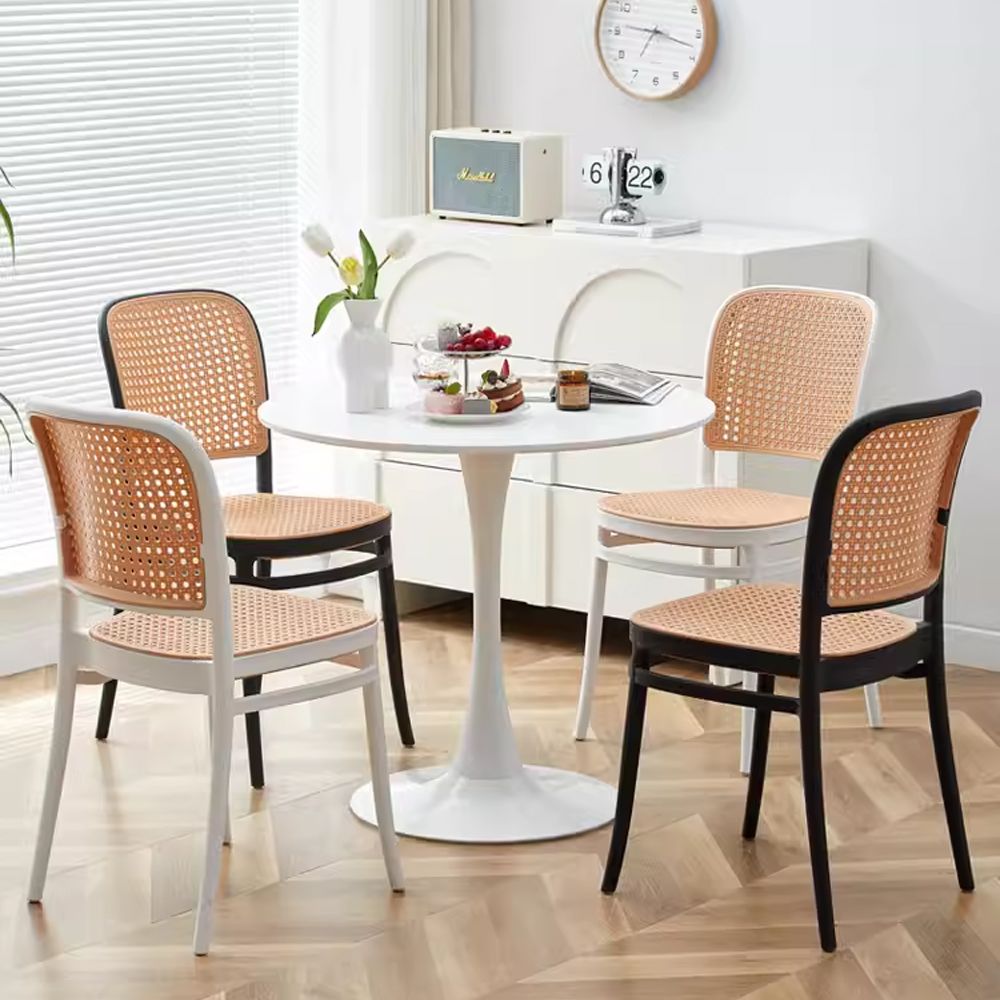 Jeffcoco Rattan Plastic Chairs, Minimalist Design,Modern Kitchen Dining Room Plastic chair Use scene Garden Balcony kitchen (Black 1 pc)