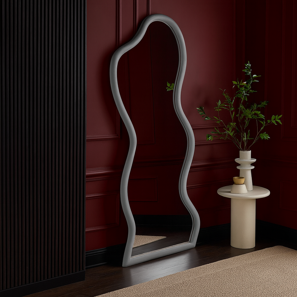 Cloudy Floor Mirror – Modern Leaner Mirror with Elegant MDF Frame | Luxury Full-Length Wall Mirror (Grey)