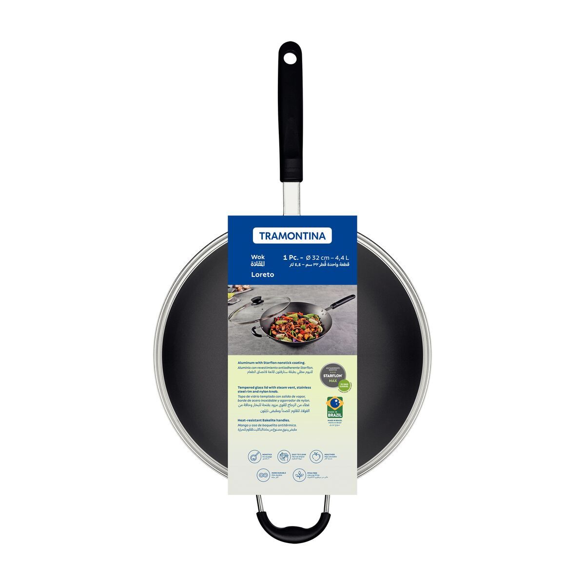 Versatility is the keyword of Tramontina Loreto aluminum wok pan with interior Starflon Max nonstick coating graphite 32 centimeters in diameter 4,4-liter capacity! An item that provides greater quality and convenience when preparing your food, in addition to the ease of preparing different types of recipes