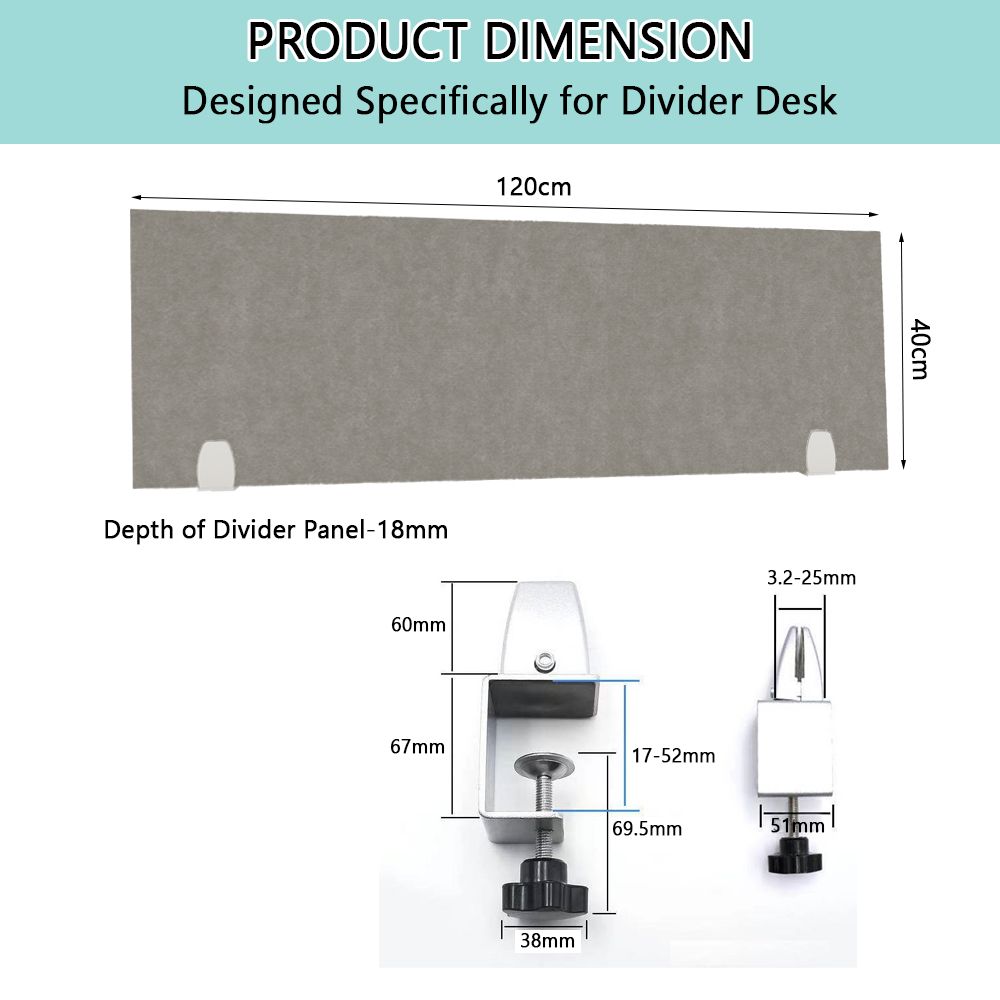 Mahmayi 120x40 Acoustic Desk Privacy Divider Panel - Noise Reducing Partition for Workstations, Libraries and Offices - Grey
