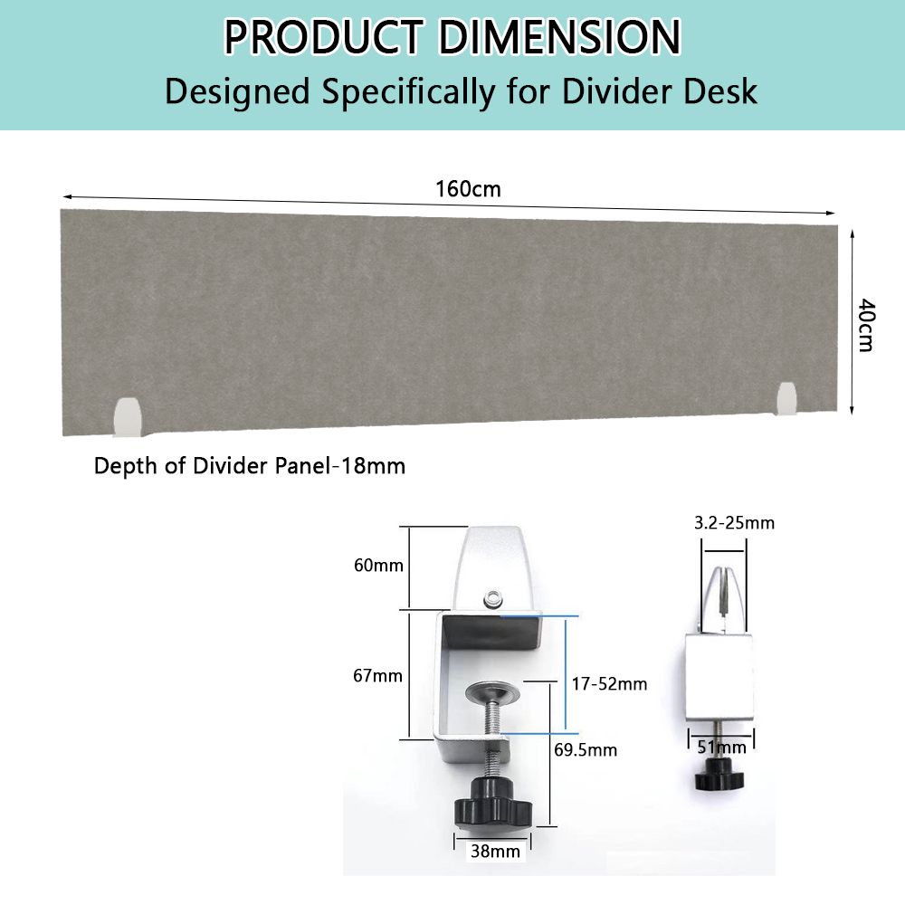 Mahmayi 160x40 Acoustic Desk Privacy Divider Panel - Noise Reducing Partition for Workstations, Libraries and Offices - Grey