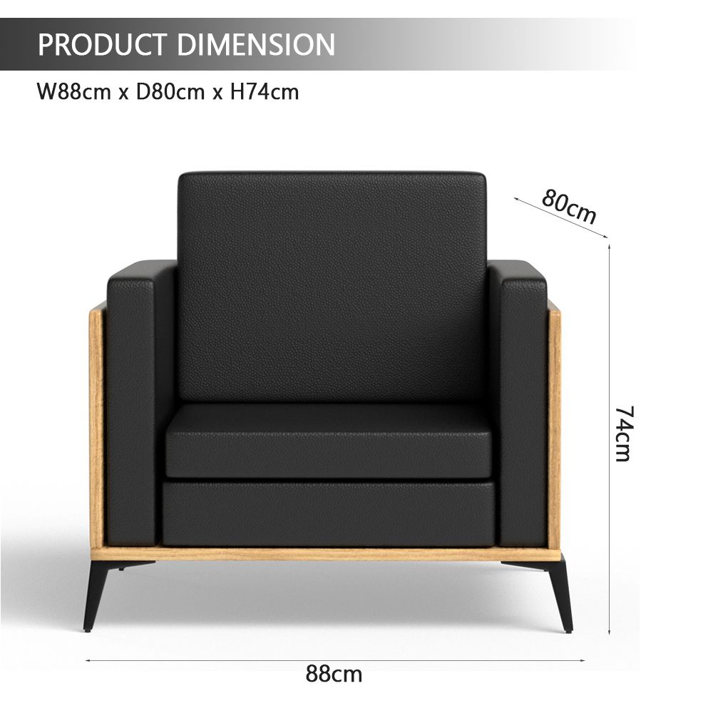The Mahmayi KD 3326 Stylish Single Seat Sofa is a functional, stylish, and comfortable furniture item fit for any living or working space ranging from your home living room space to office and seminar seating or lobby or waiting room furniture. The sofa is modern design gives it a stylish accent piece for modern furniture and decoration as it fits in well with other decor. The black cover adds modern and stylish look to the appearance of the sofa while also allowing the sofa to fit well with various other decorations in a space or with multiple conflicting colour schemes in use already.