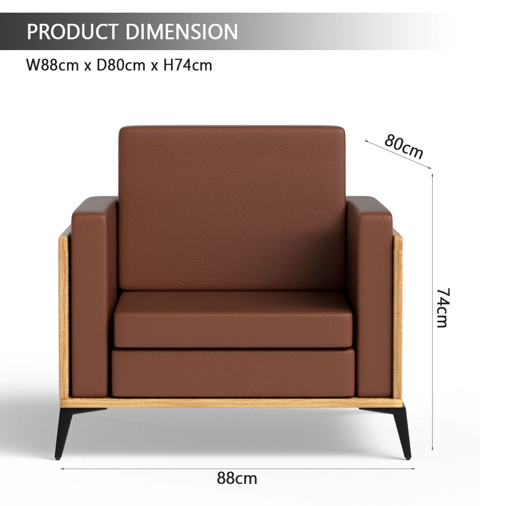 The Mahmayi KD 3326 Stylish Single Seat Sofa is a functional, stylish, and comfortable furniture item fit for any living or working space ranging from your home living room space to office and seminar seating or lobby or waiting room furniture. The sofa is modern design gives it a stylish accent piece for modern furniture and decoration as it fits in well with other decor. The brown cover adds modern and stylish look to the appearance of the sofa while also allowing the sofa to fit well with various other decorations in a space or with multiple conflicting colour schemes in use already.