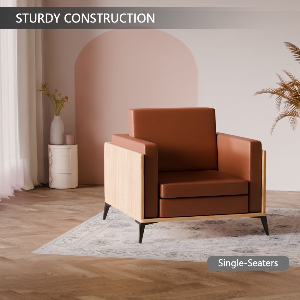 Stylish Single Seat Coco Bolo Wooden Sofa with Comfortable PU Cushion, Durable and Space Saving Design, Ideal for Home, Office, Living Room and Lounge Area - Brown
