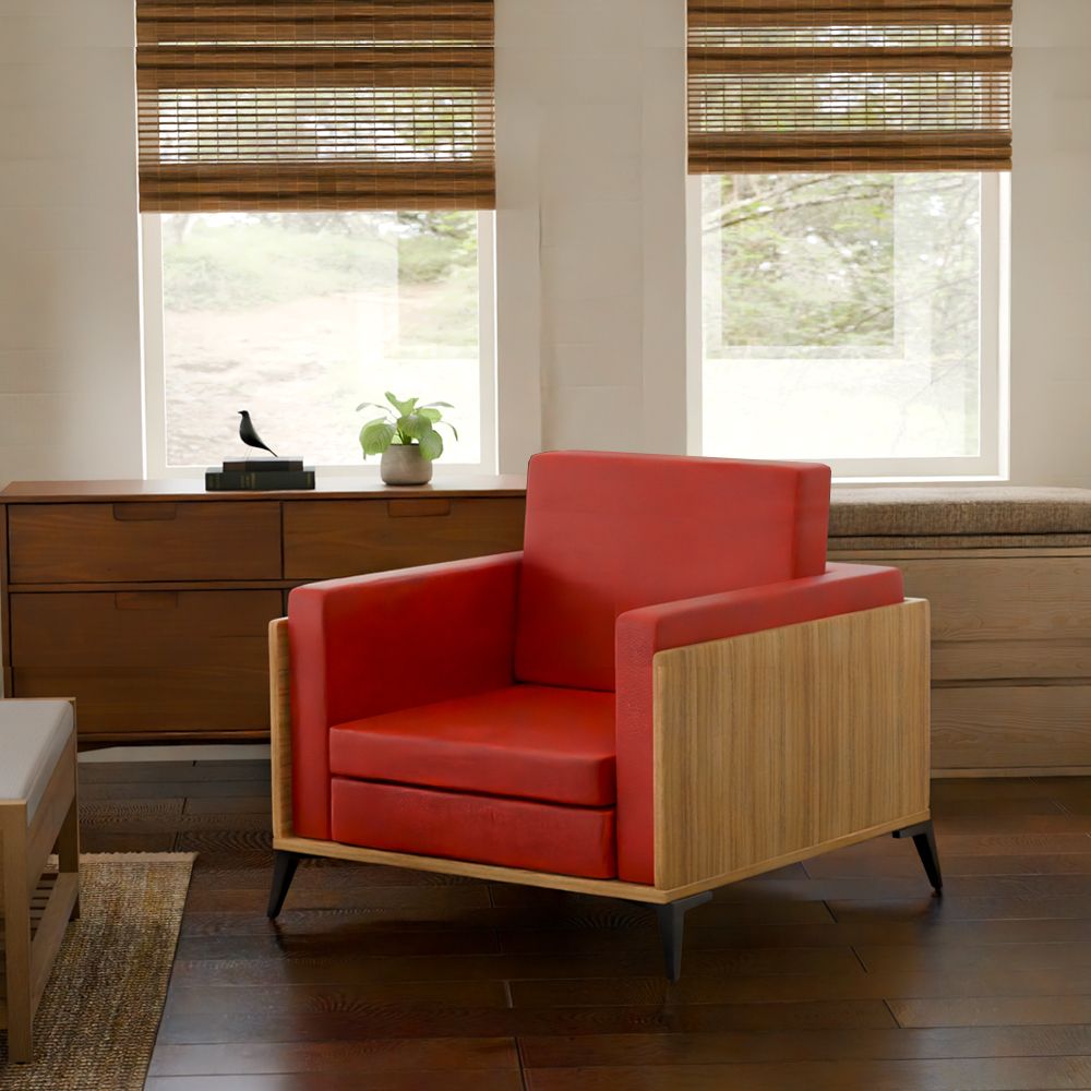 Stylish Single Seat Coco Bolo Wooden Sofa with Comfortable PU Cushion, Durable and Space Saving Design, Ideal for Home, Office, Living Room and Lounge Area - Red