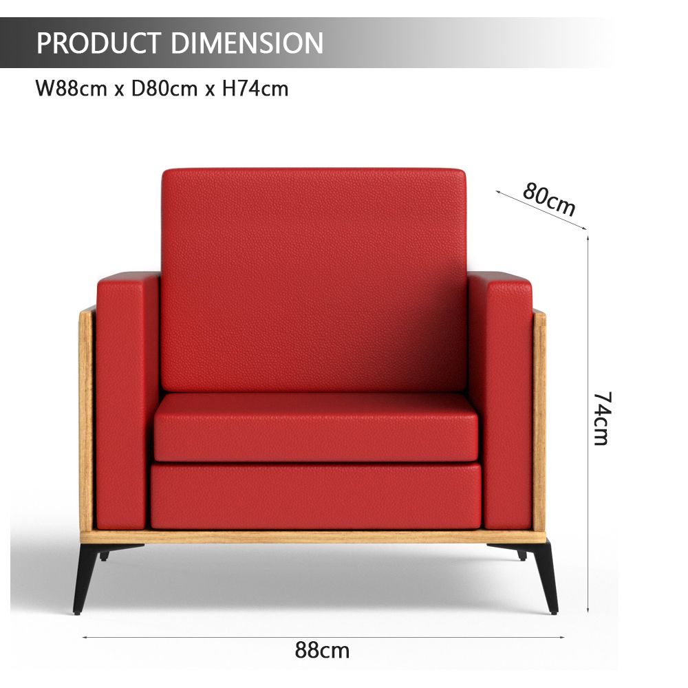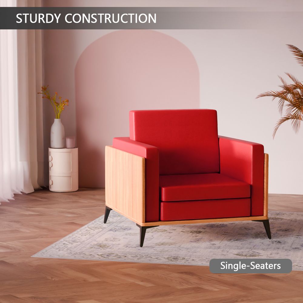The Mahmayi KD 3326 Stylish Single Seat Sofa is a functional, stylish, and comfortable furniture item fit for any living or working space ranging from your home living room space to office and seminar seating or lobby or waiting room furniture. The sofa is modern design gives it a stylish accent piece for modern furniture and decoration as it fits in well with other decor. The red cover adds modern and stylish look to the appearance of the sofa while also allowing the sofa to fit well with various other decorations in a space or with multiple conflicting colour schemes in use already.