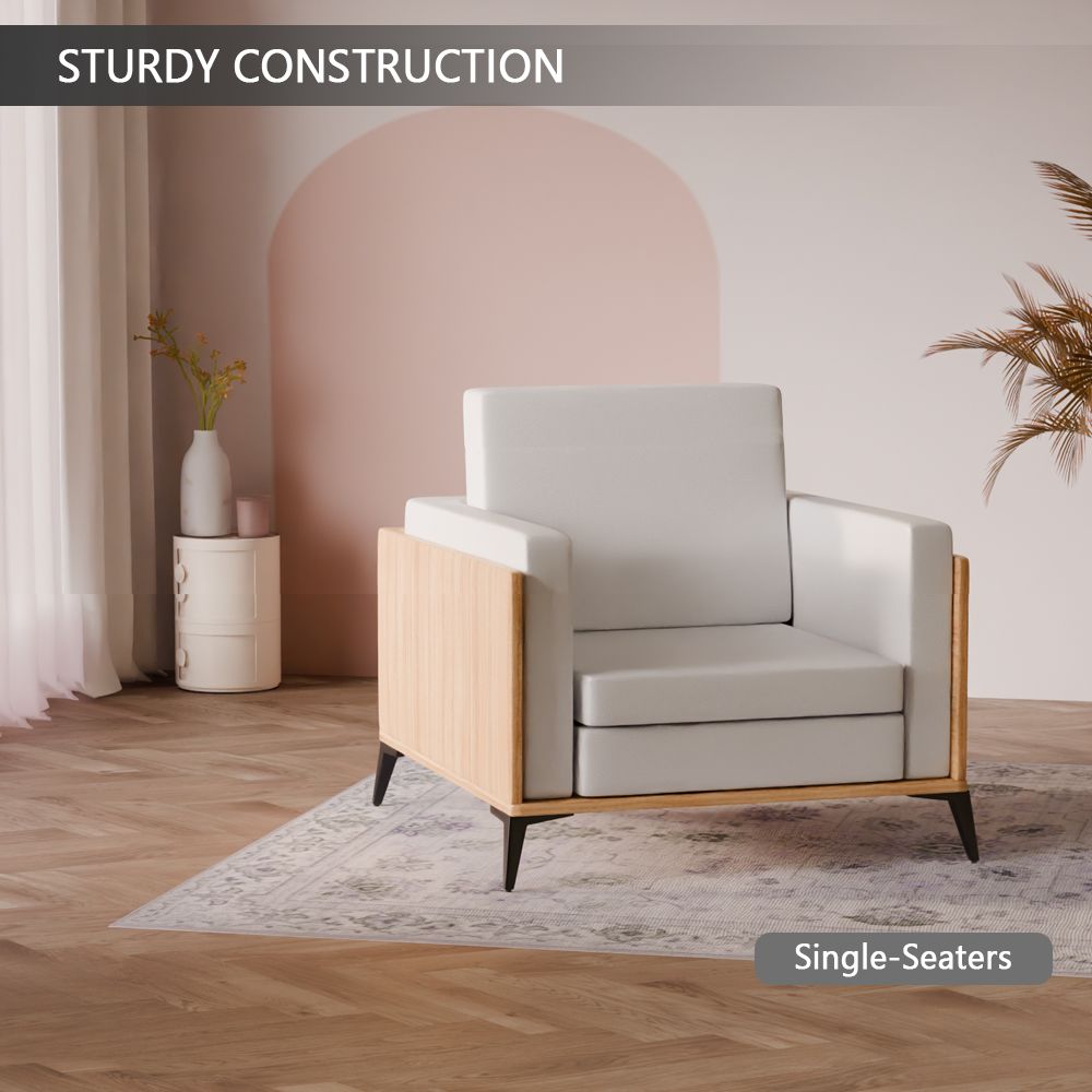 Stylish Single Seat Coco Bolo Wooden Sofa with Comfortable PU Cushion, Durable and Space Saving Design, Ideal for Home, Office, Living Room and Lounge Area - White