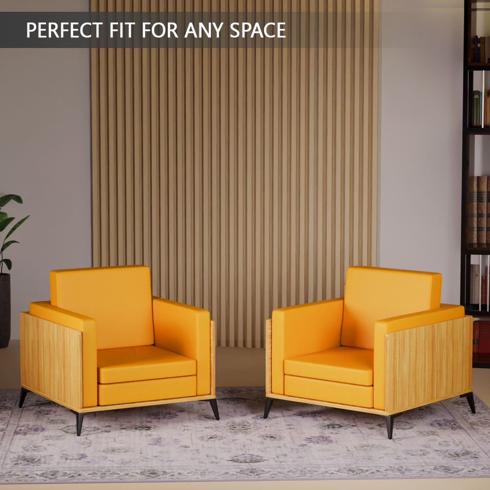 The Mahmayi KD 3326 Stylish Single Seat Sofa is a functional, stylish, and comfortable furniture item fit for any living or working space ranging from your home living room space to office and seminar seating or lobby or waiting room furniture. The sofa is modern design gives it a stylish accent piece for modern furniture and decoration as it fits in well with other decor. The yellow cover adds modern and stylish look to the appearance of the sofa while also allowing the sofa to fit well with various other decorations in a space or with multiple conflicting colour schemes in use already.